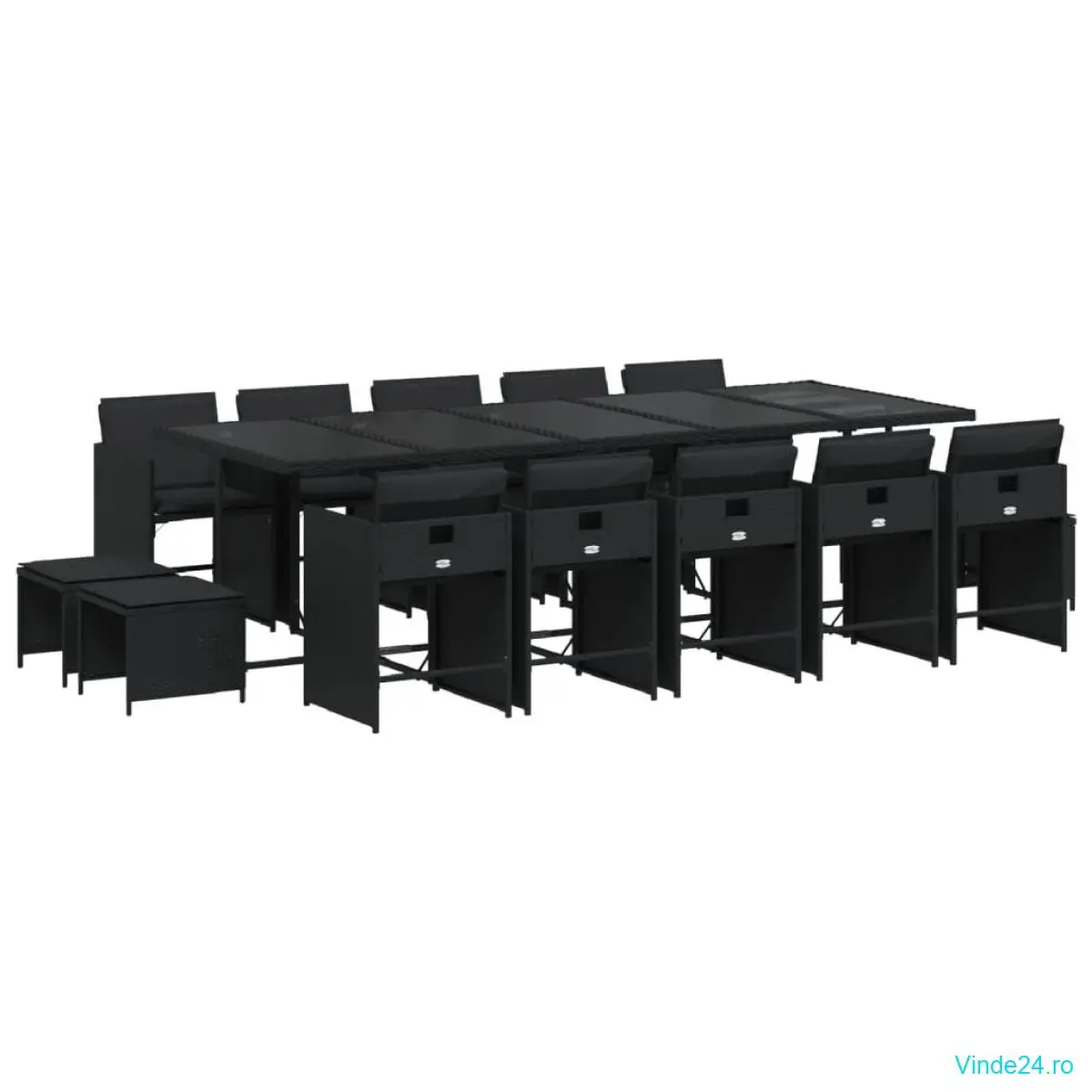vidaXL Set mobilier de grădină cu perne, 15 piese, negru, poliratan