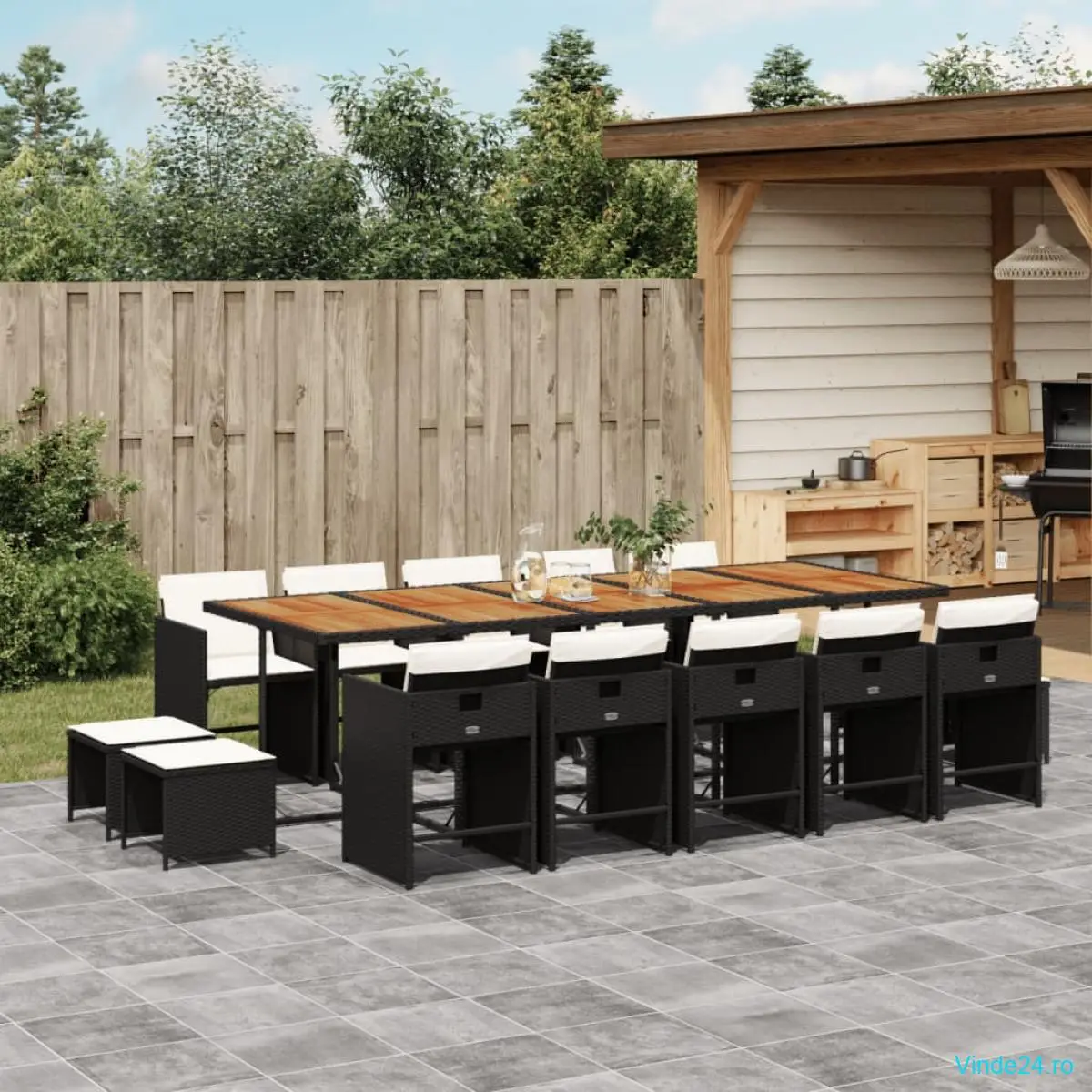 vidaXL Set mobilier de grădină cu perne, 15 piese, negru, poliratan