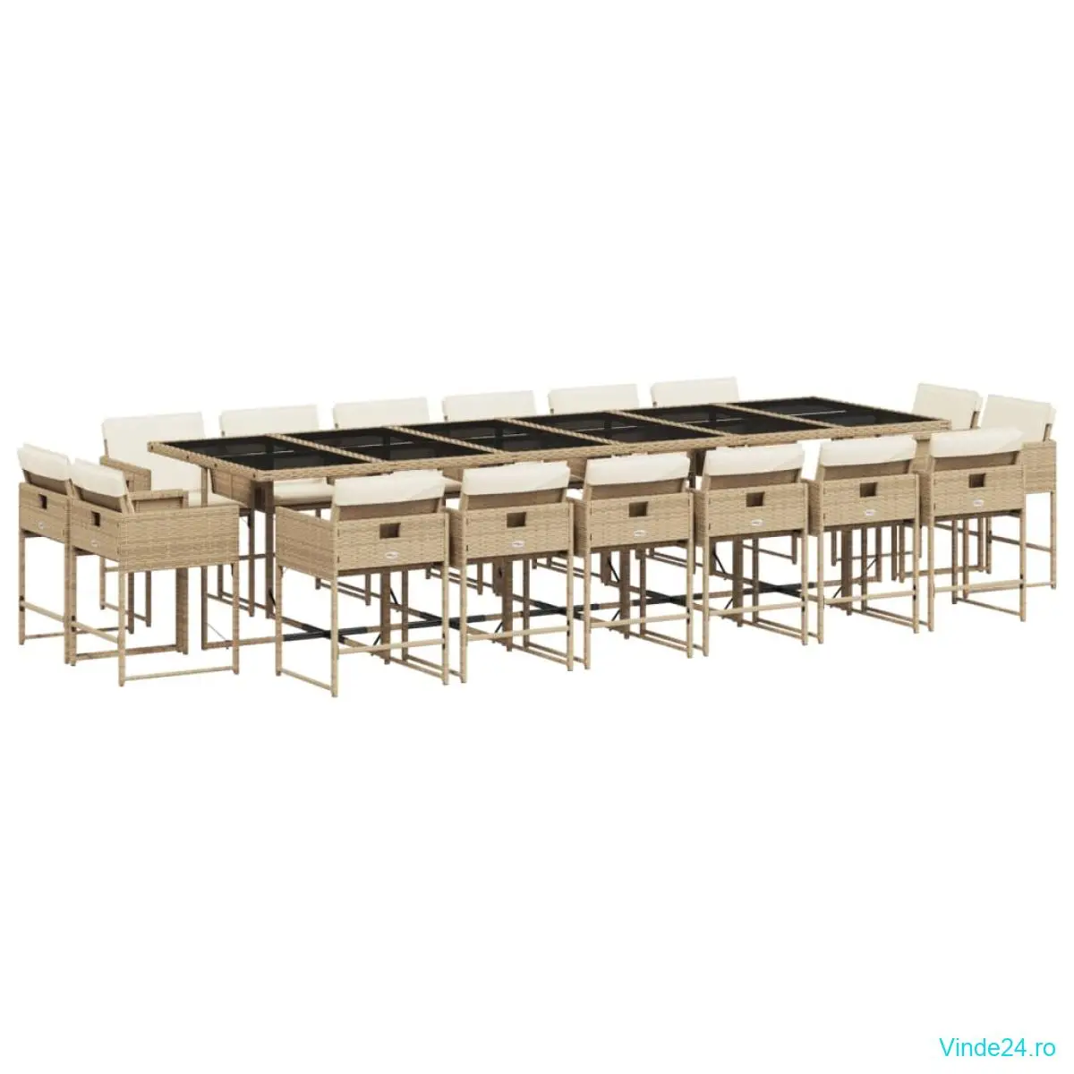 vidaXL Set mobilier de grădină cu perne, 17 piese, bej, poliratan