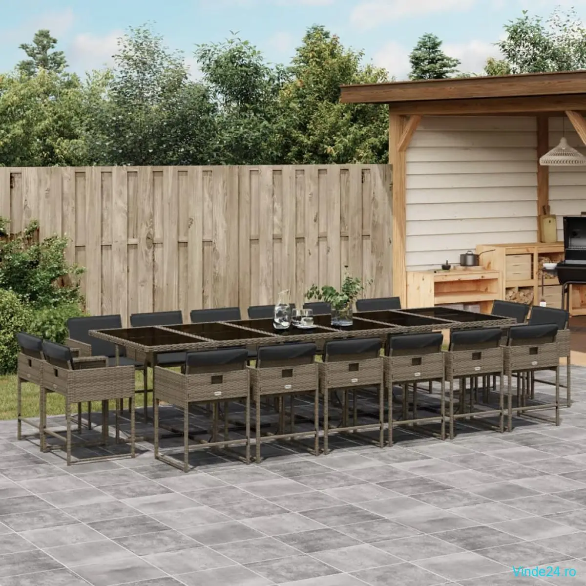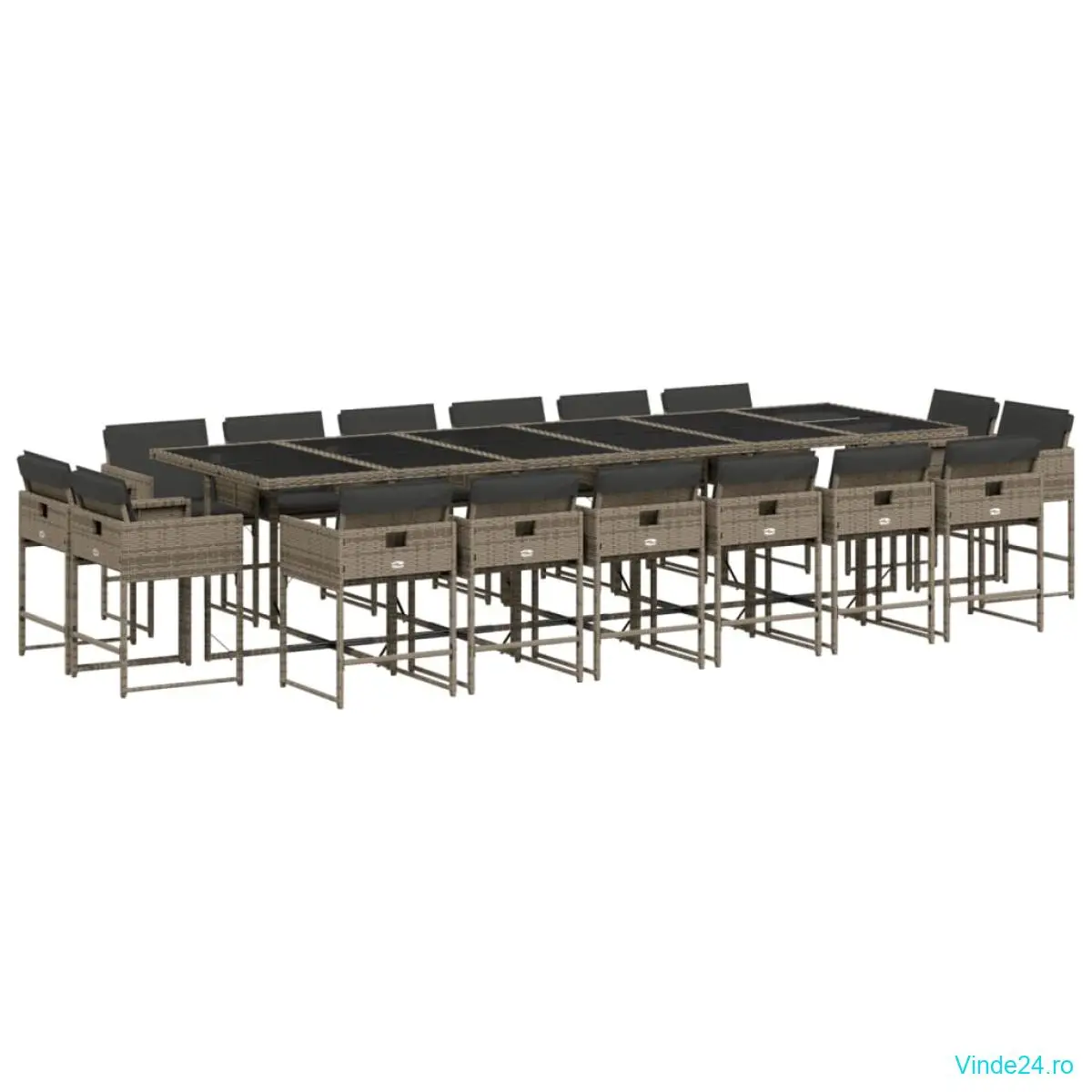 vidaXL Set mobilier de grădină cu perne, 17 piese, gri, poliratan
