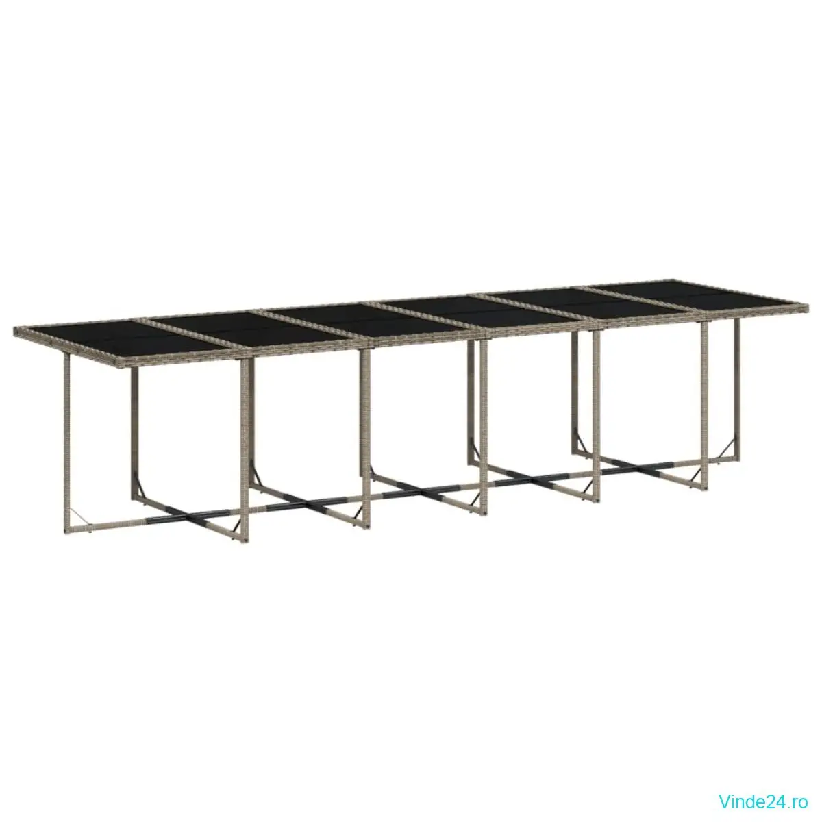 • Blat de masă din sticlă: Blatul mesei de grădină este fabricat din sticlă securizată puternică și durabilă, fiind ușor de curățat cu o cârpă umedă și adăugând o notă de eleganță spațiului dvs. de exterior.