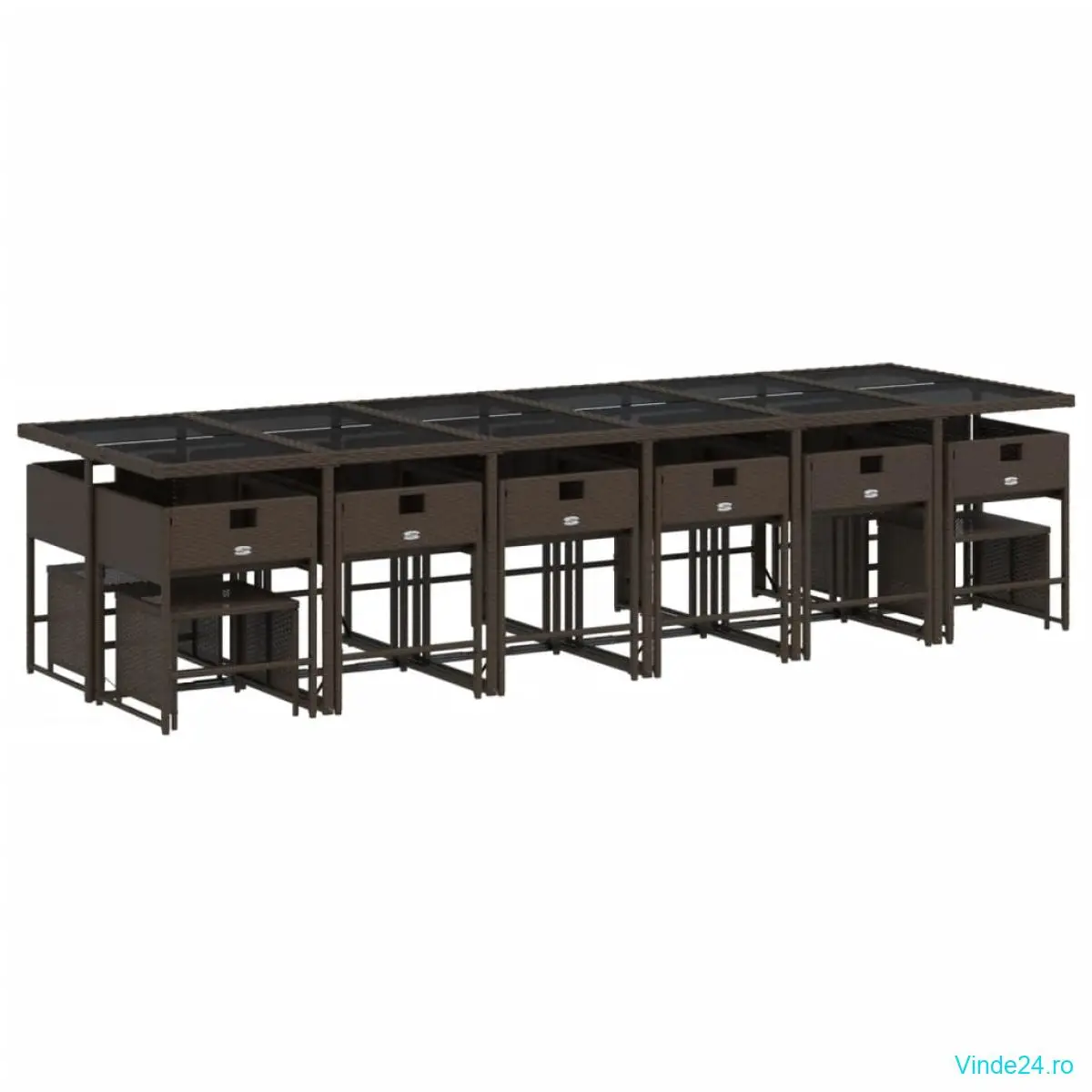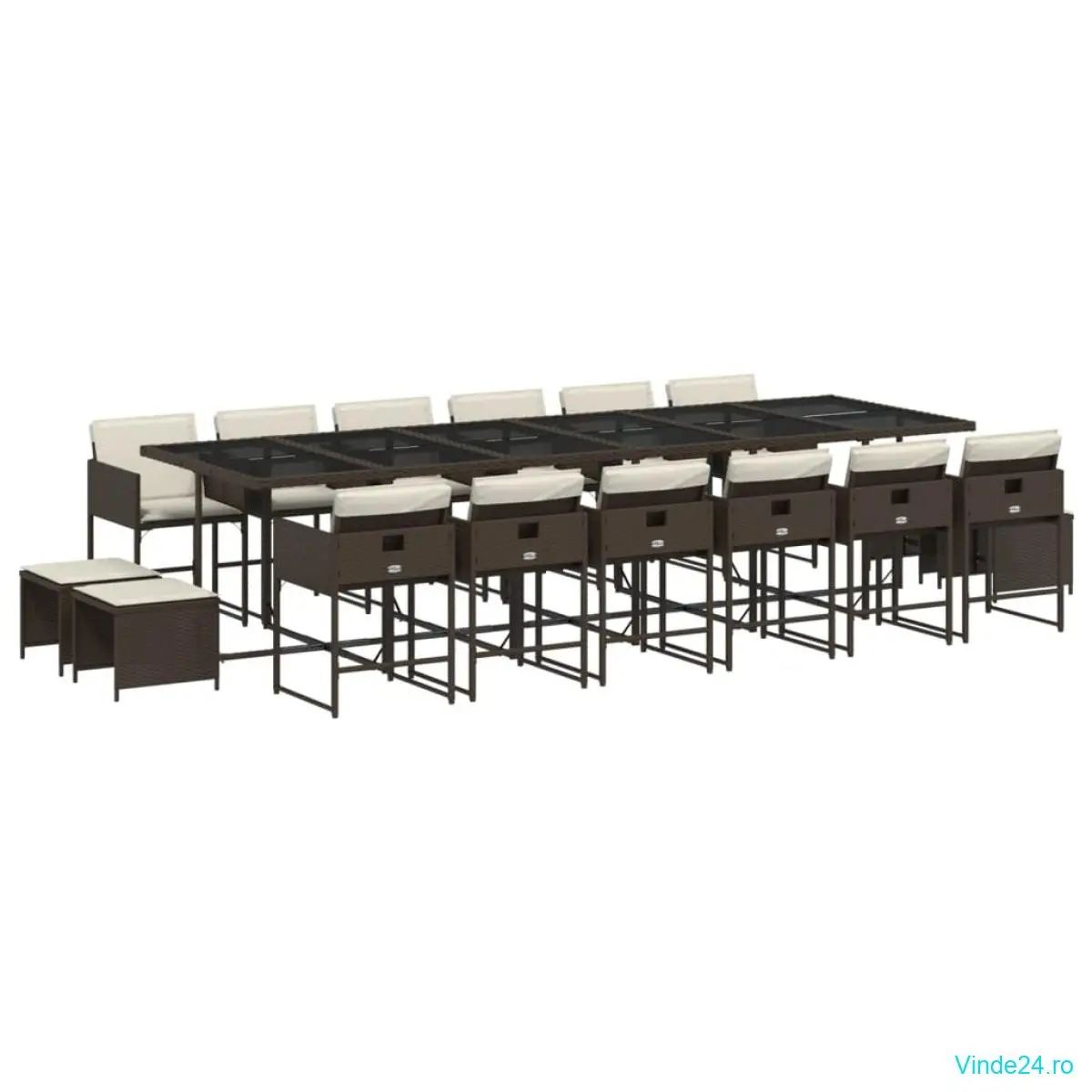 vidaXL Set mobilier de grădină cu perne, 17 piese, maro, poliratan