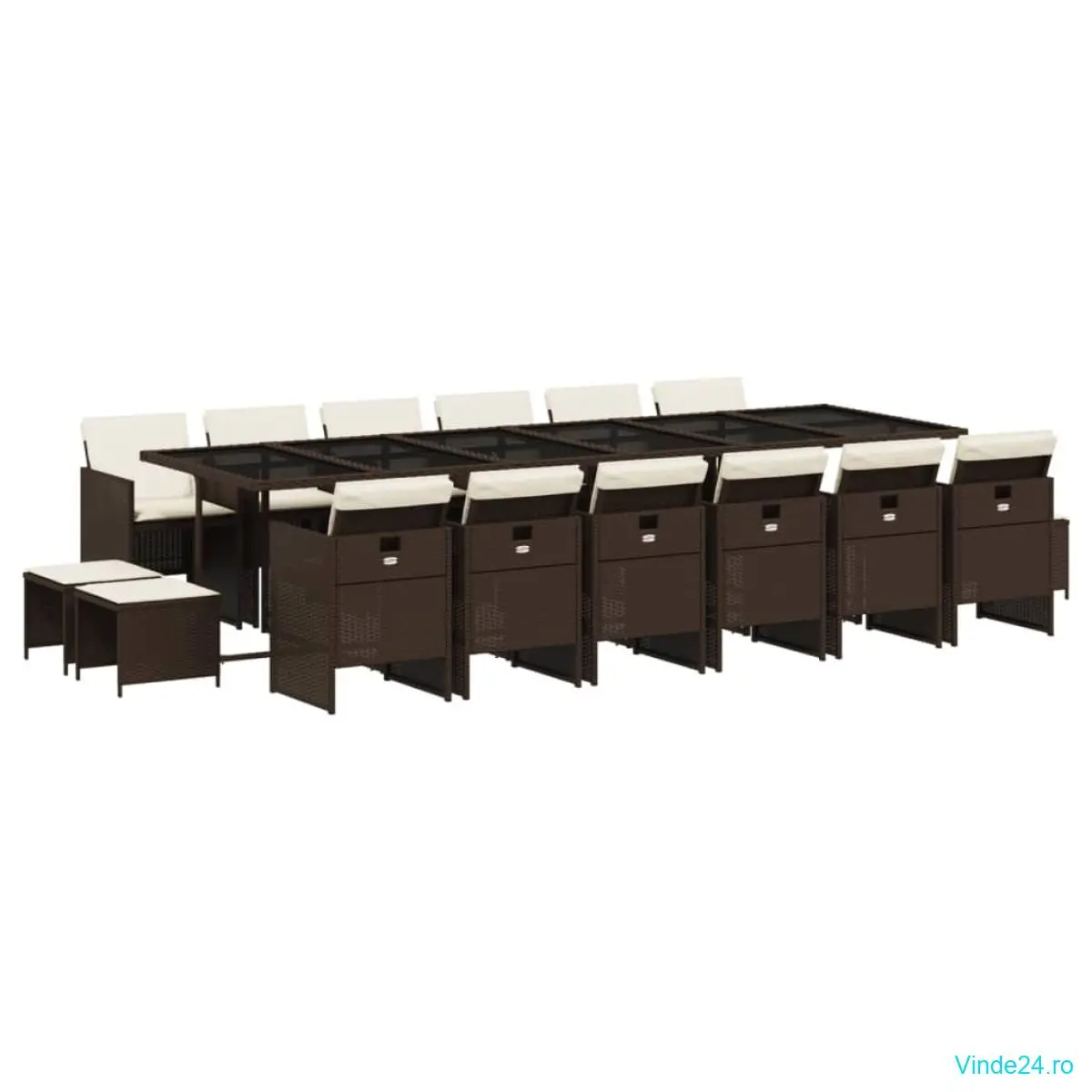 vidaXL Set mobilier de grădină cu perne, 17 piese, maro, poliratan