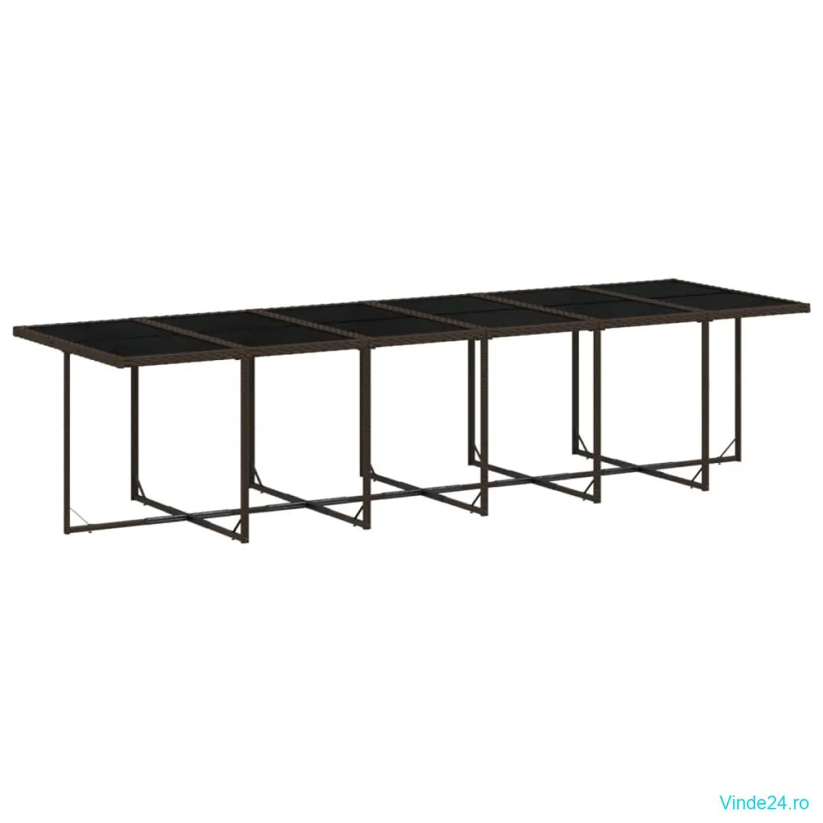 • Blat de masă din sticlă: Blatul mesei de exterior este fabricat din sticlă securizată puternică și durabilă, fiind ușor de curățat cu o cârpă umedă și adăugând o notă de eleganță spațiului dvs. de exterior.