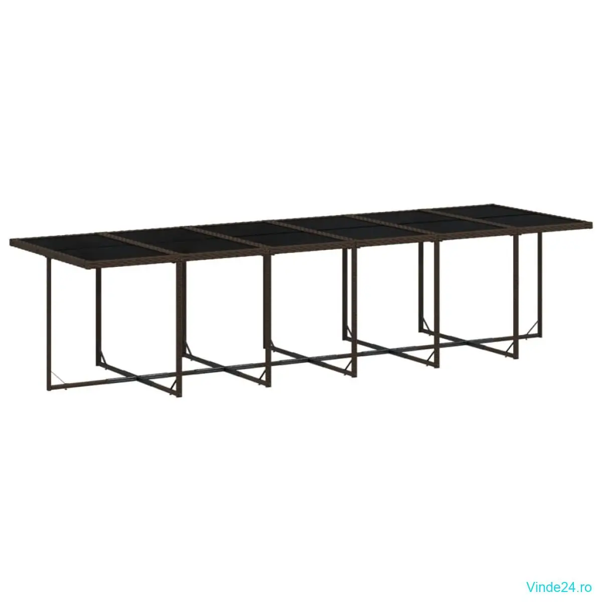 - Blat de masă din sticlă: Blatul mesei de exterior este fabricat din sticlă securizată puternică și durabilă, fiind ușor de curățat cu o cârpă umedă și adăugând o notă de eleganță spațiului dvs. de exterior.