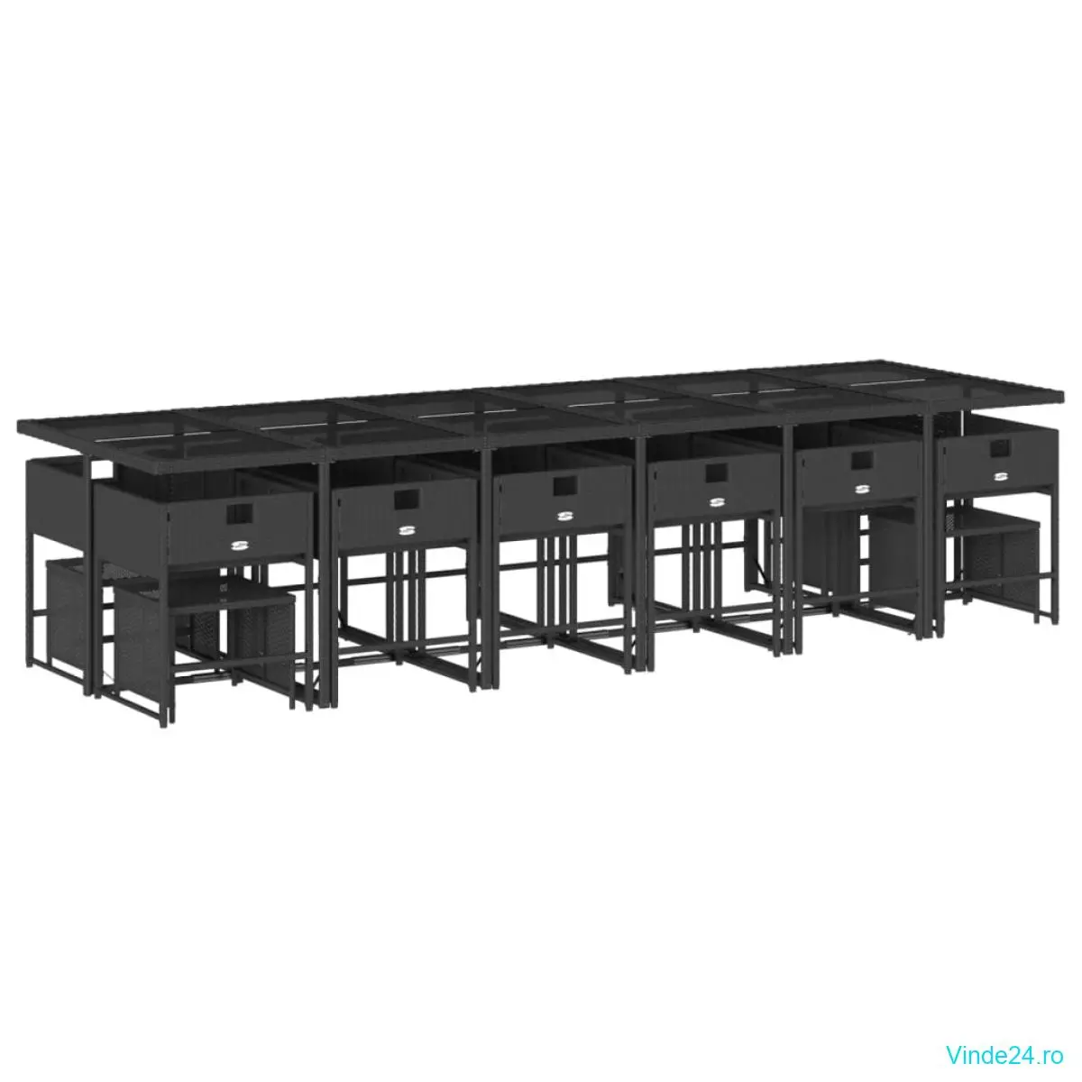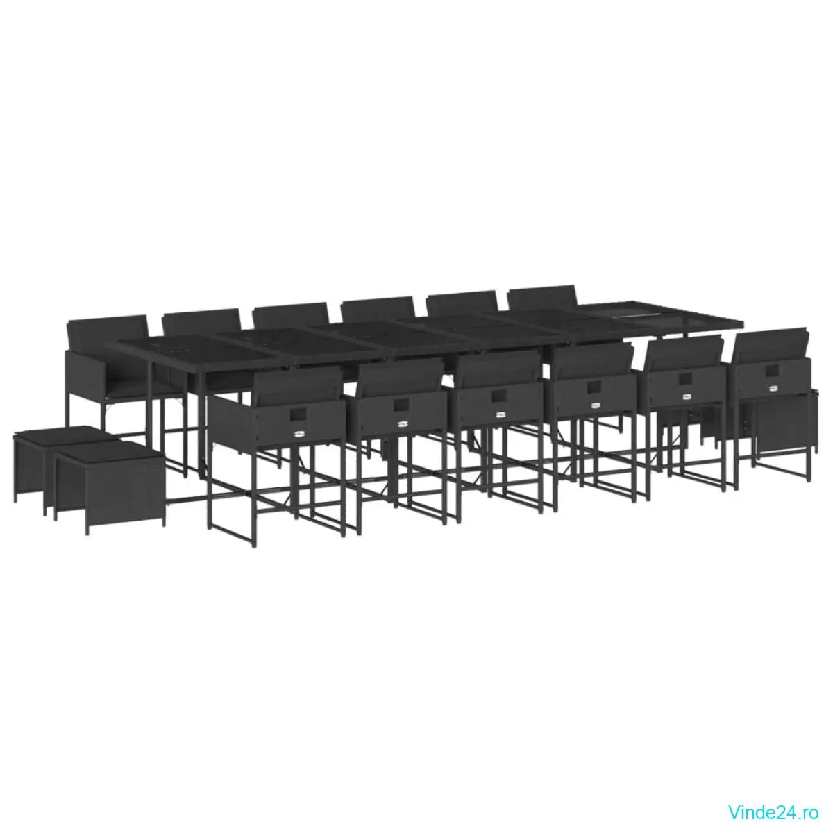 vidaXL Set mobilier de grădină cu perne, 17 piese, negru, poliratan