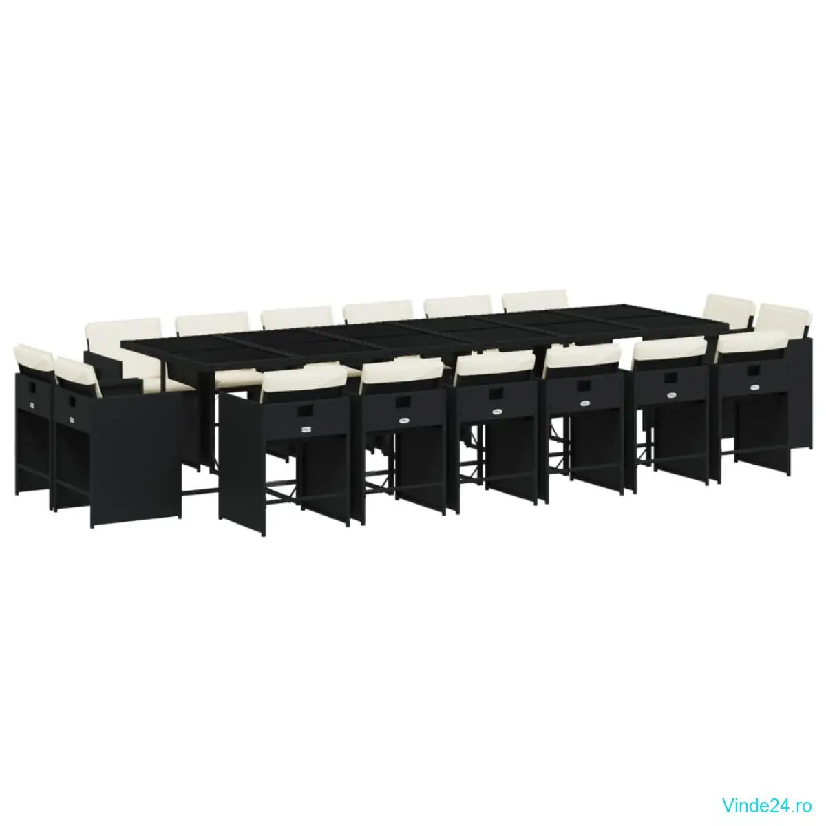 vidaXL Set mobilier de grădină cu perne, 17 piese, negru, poliratan