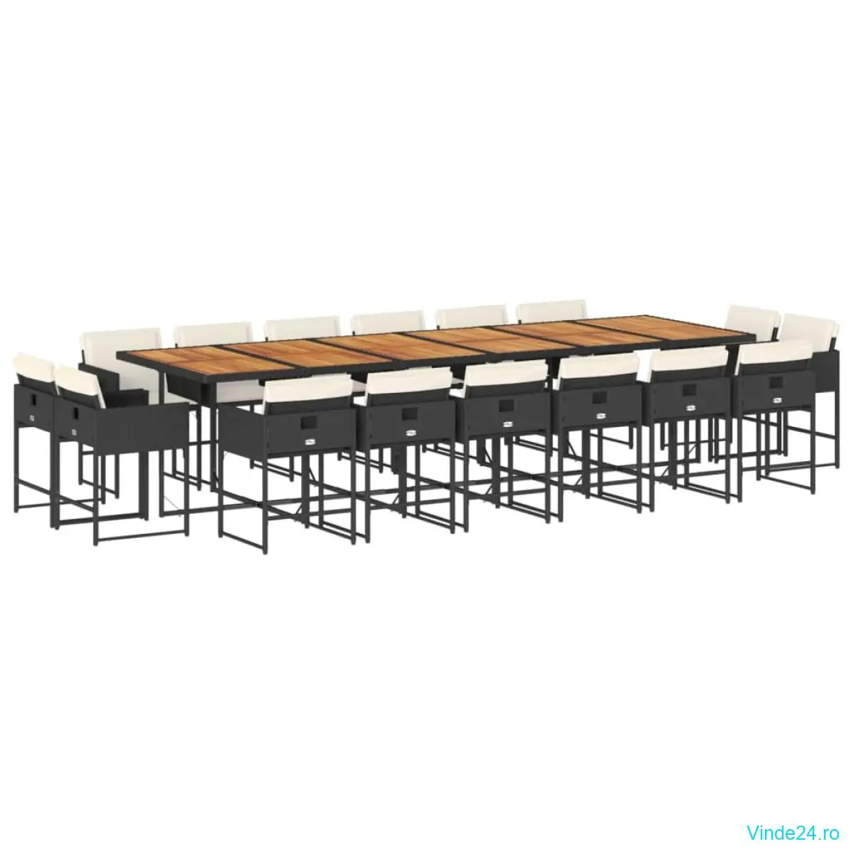 - Material: Ratan PE, oțel vopsit electrostatic, lemn masiv de acacia cu finisaj în ulei