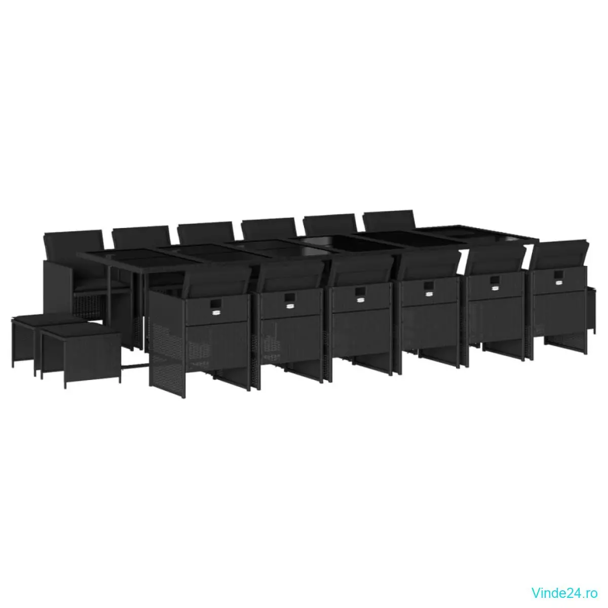 vidaXL Set mobilier de grădină cu perne, 17 piese, negru, poliratan
