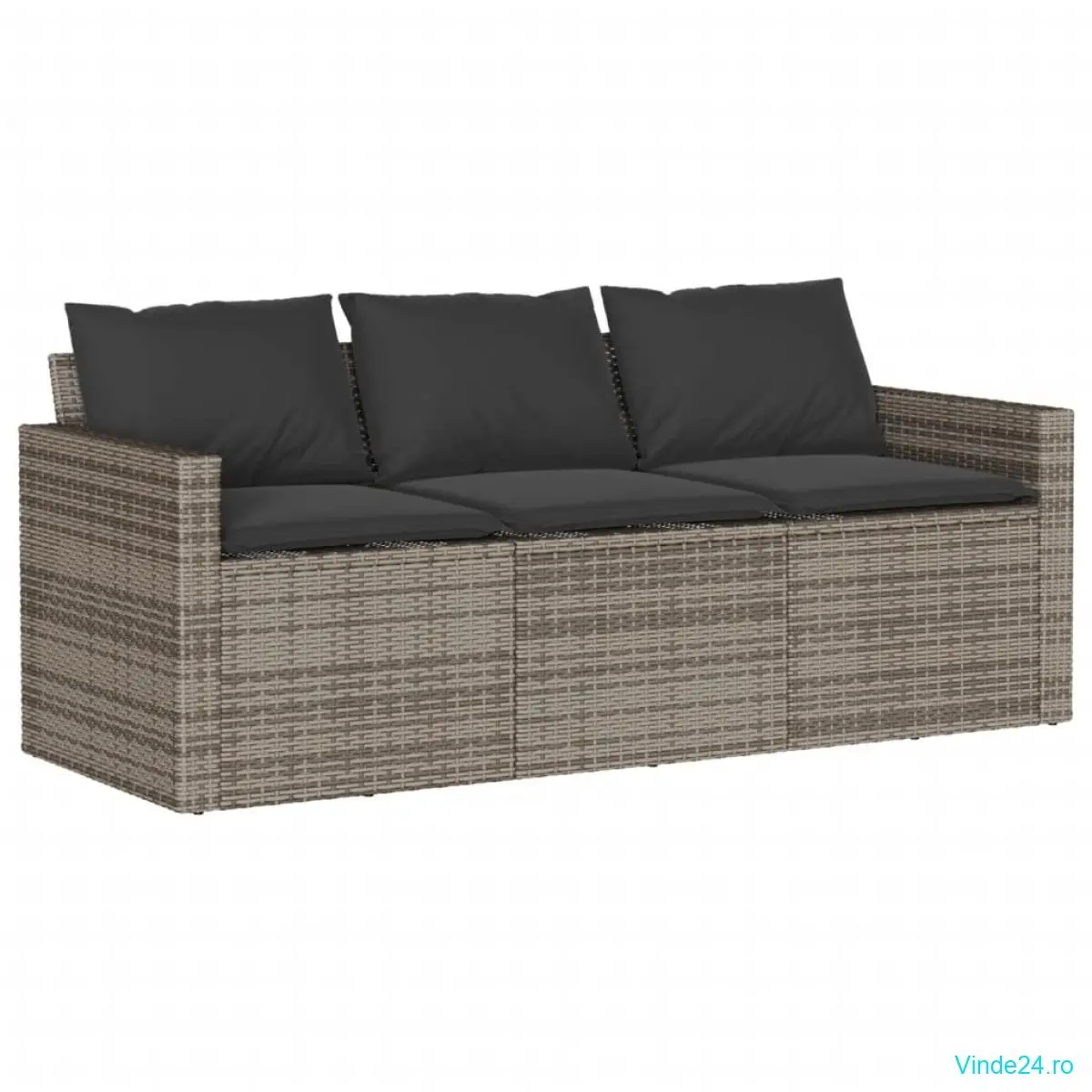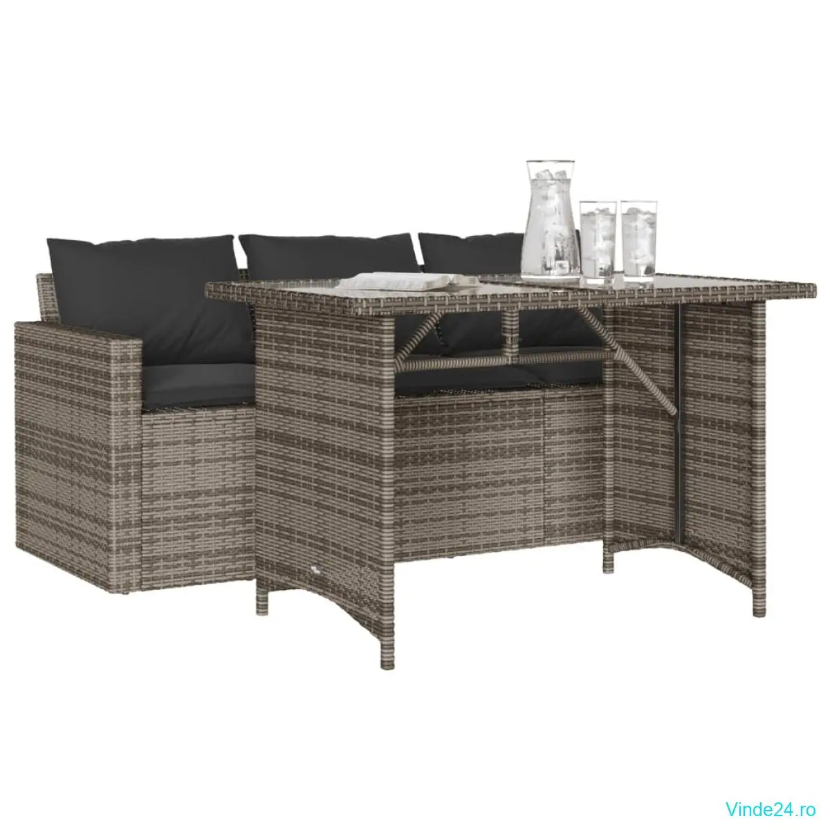 vidaXL Set mobilier de grădină cu perne, 2 piese, gri, poliratan