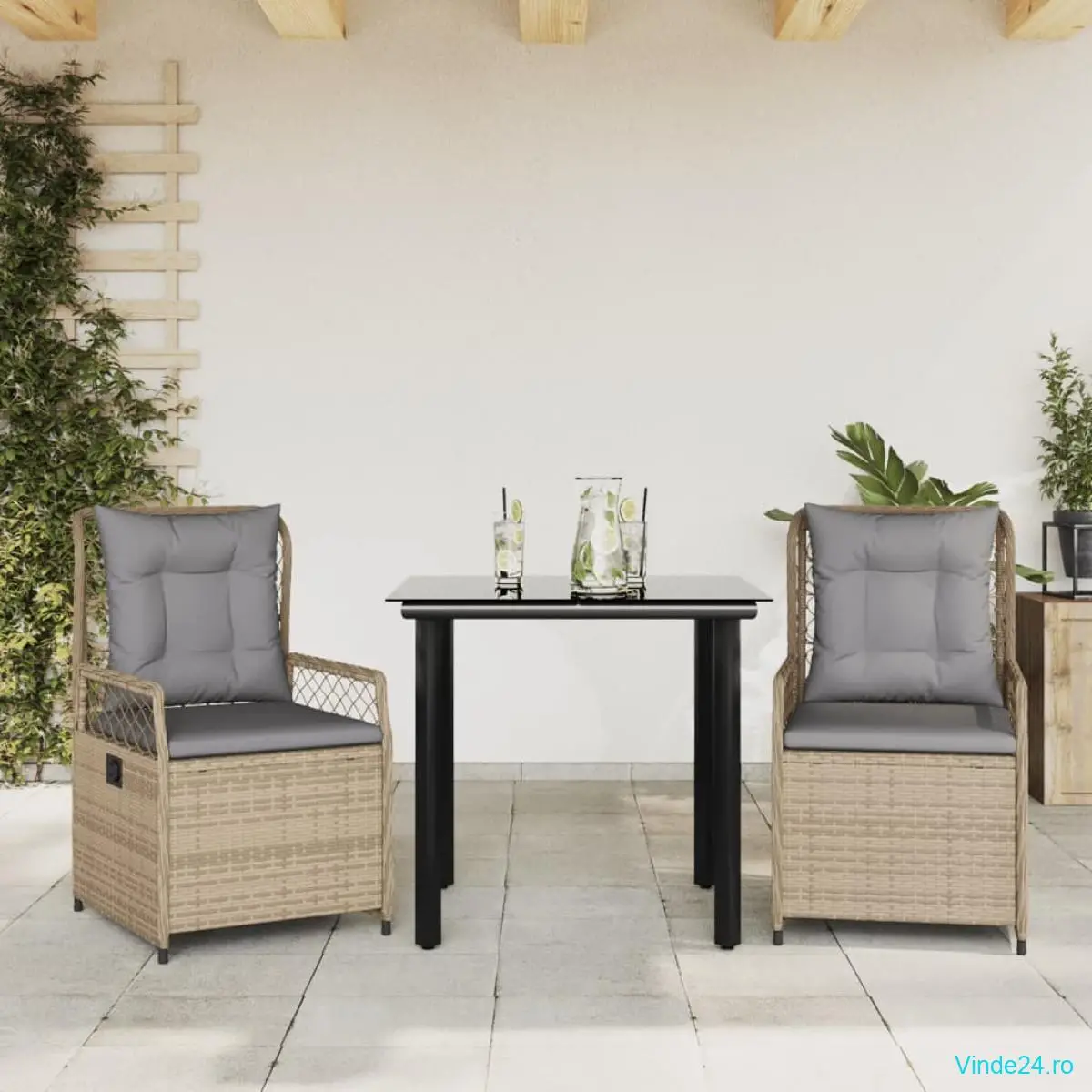 - Blat de masă din sticlă: Blatul mesei de exterior este fabricat din sticlă securizată puternică și durabilă, fiind ușor de curățat cu o cârpă umedă și adăugând o notă de eleganță spațiului dvs. de exterior.