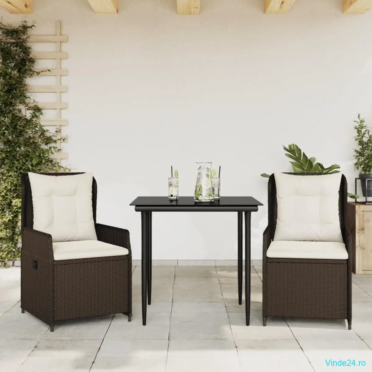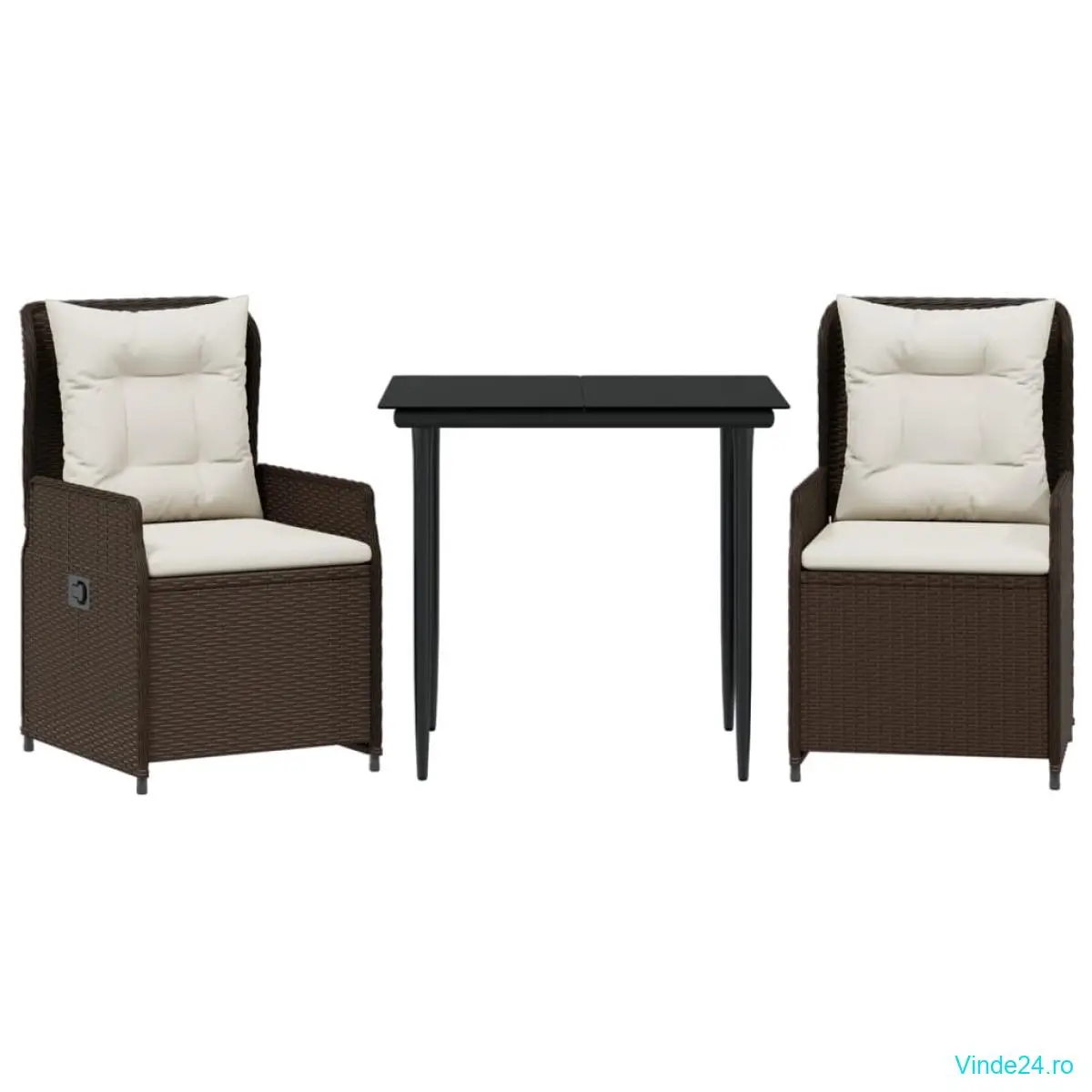 vidaXL Set mobilier de grădină cu perne, 3 piese, maro, poliratan