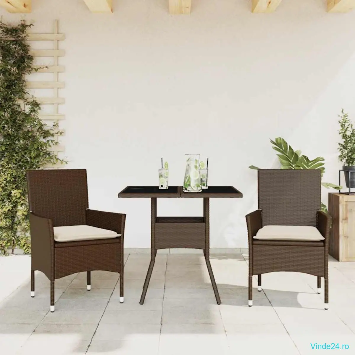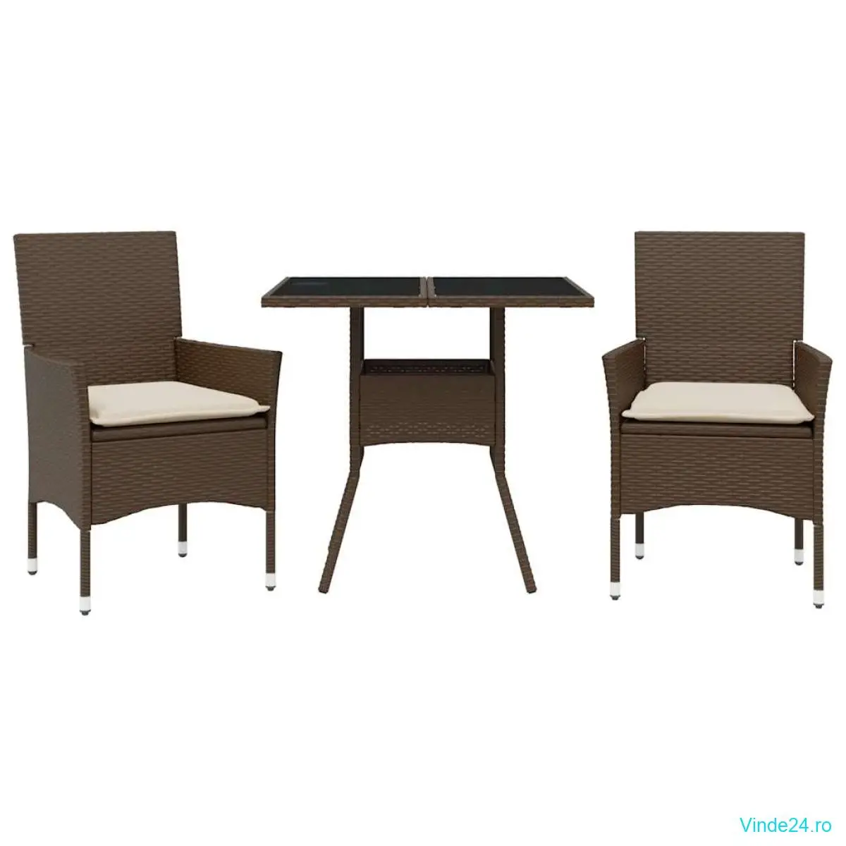 vidaXL Set mobilier de grădină cu perne 3 piese maro poliratan&sticlă