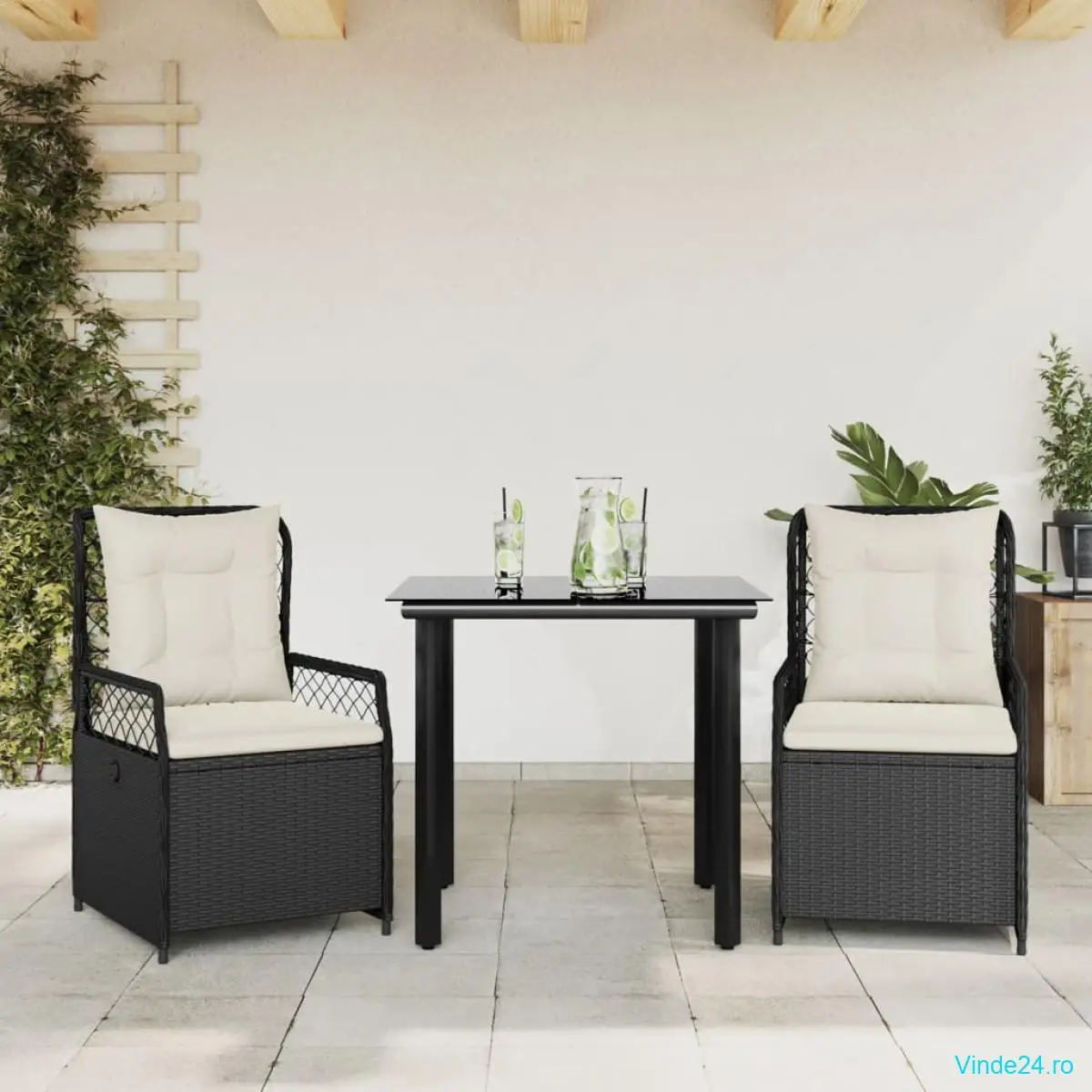 - Blat de masă din sticlă: Blatul mesei de exterior este fabricat din sticlă securizată puternică și durabilă, fiind ușor de curățat cu o cârpă umedă și adăugând o notă de eleganță spațiului dvs. de exterior.