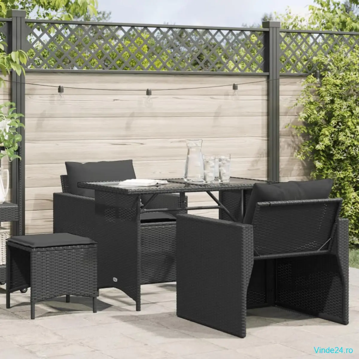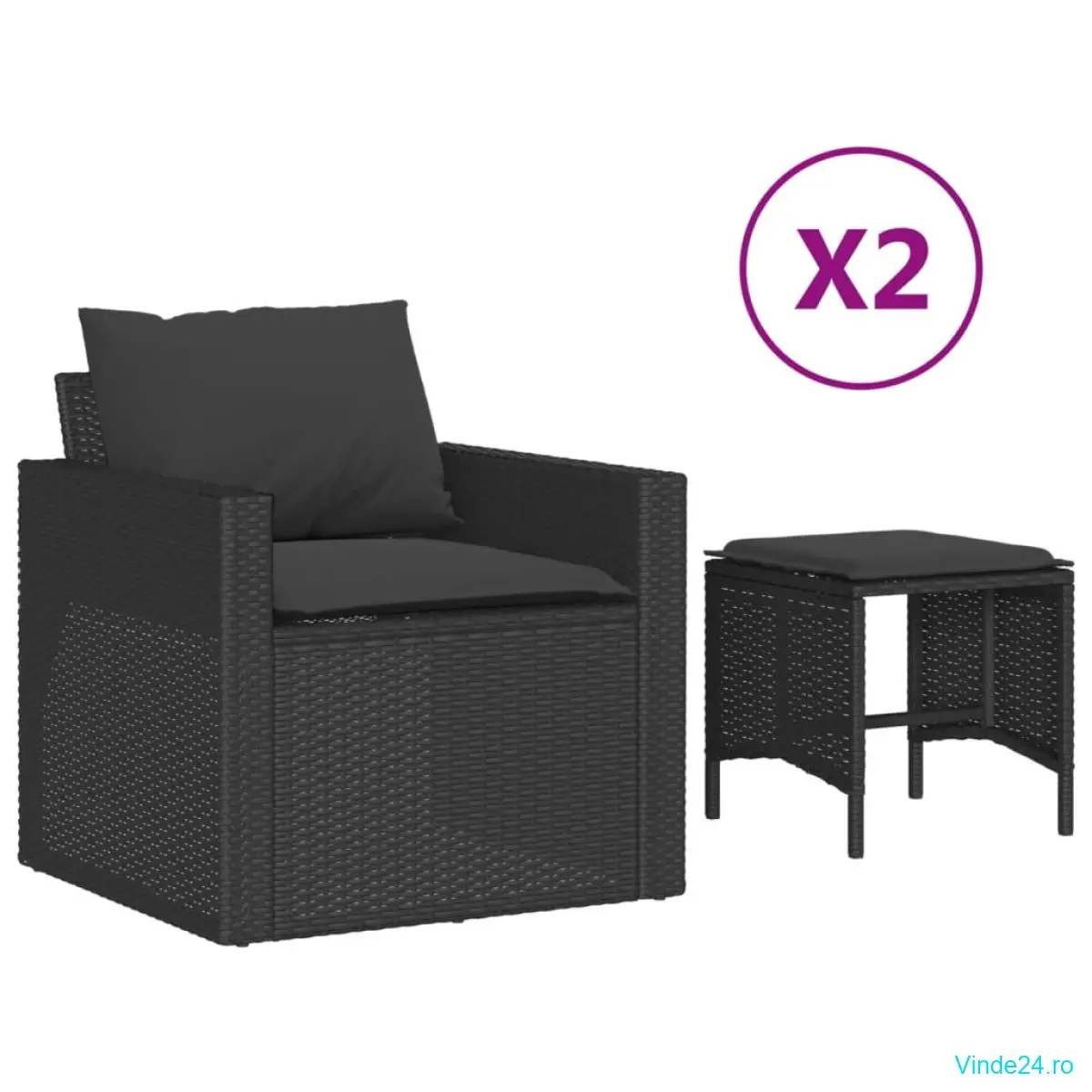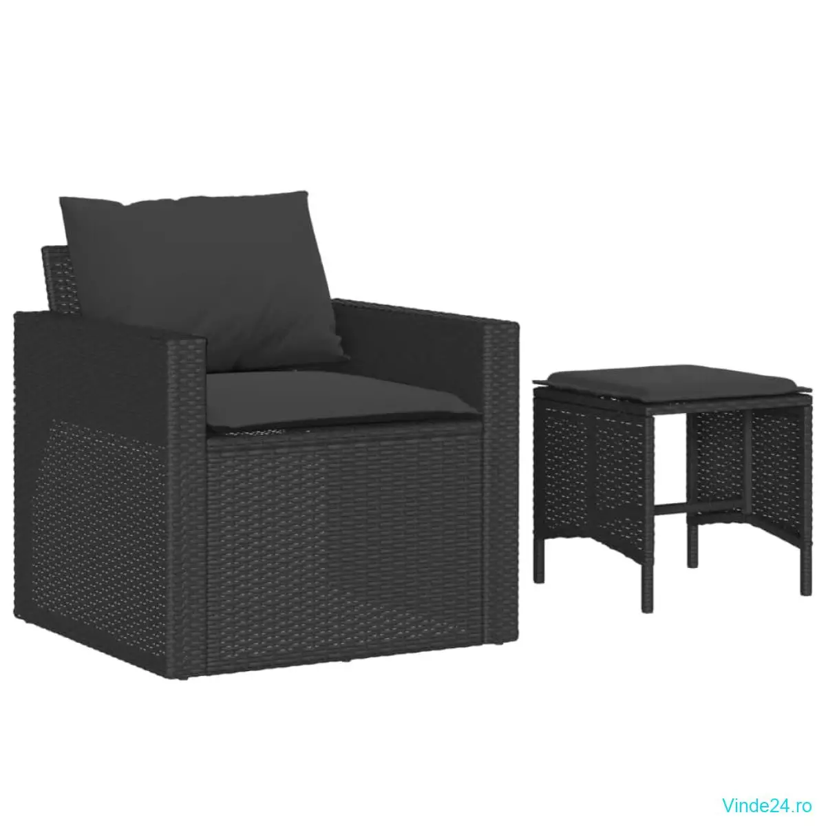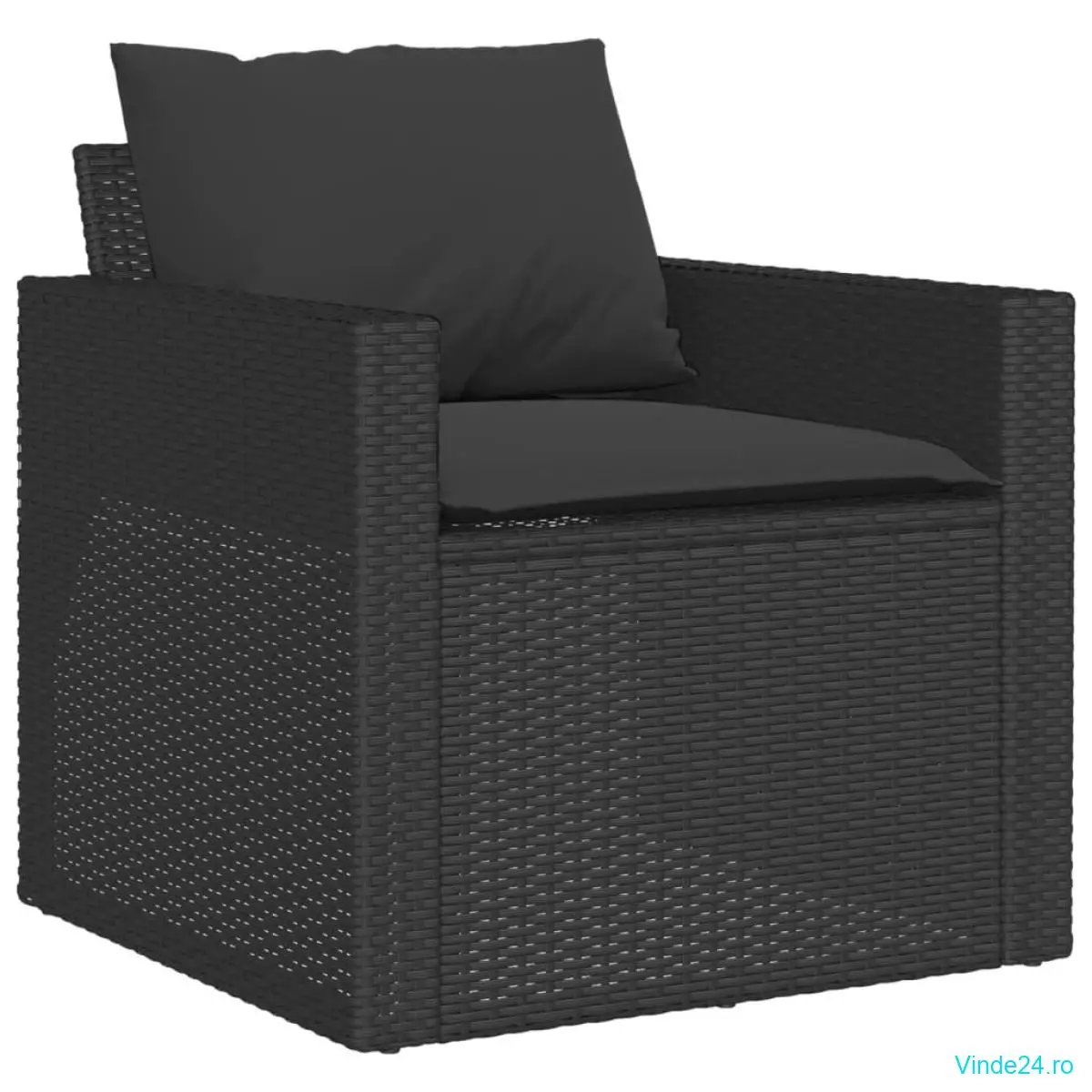 vidaXL Set mobilier de grădină cu perne, 4 piese, negru, poliratan