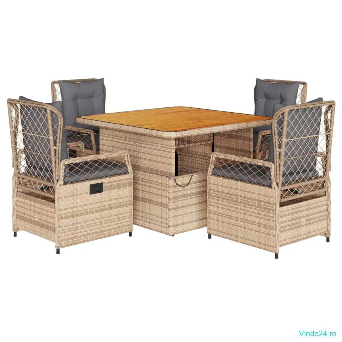 vidaXL Set mobilier de grădină cu perne, 5 piese, bej, poliratan