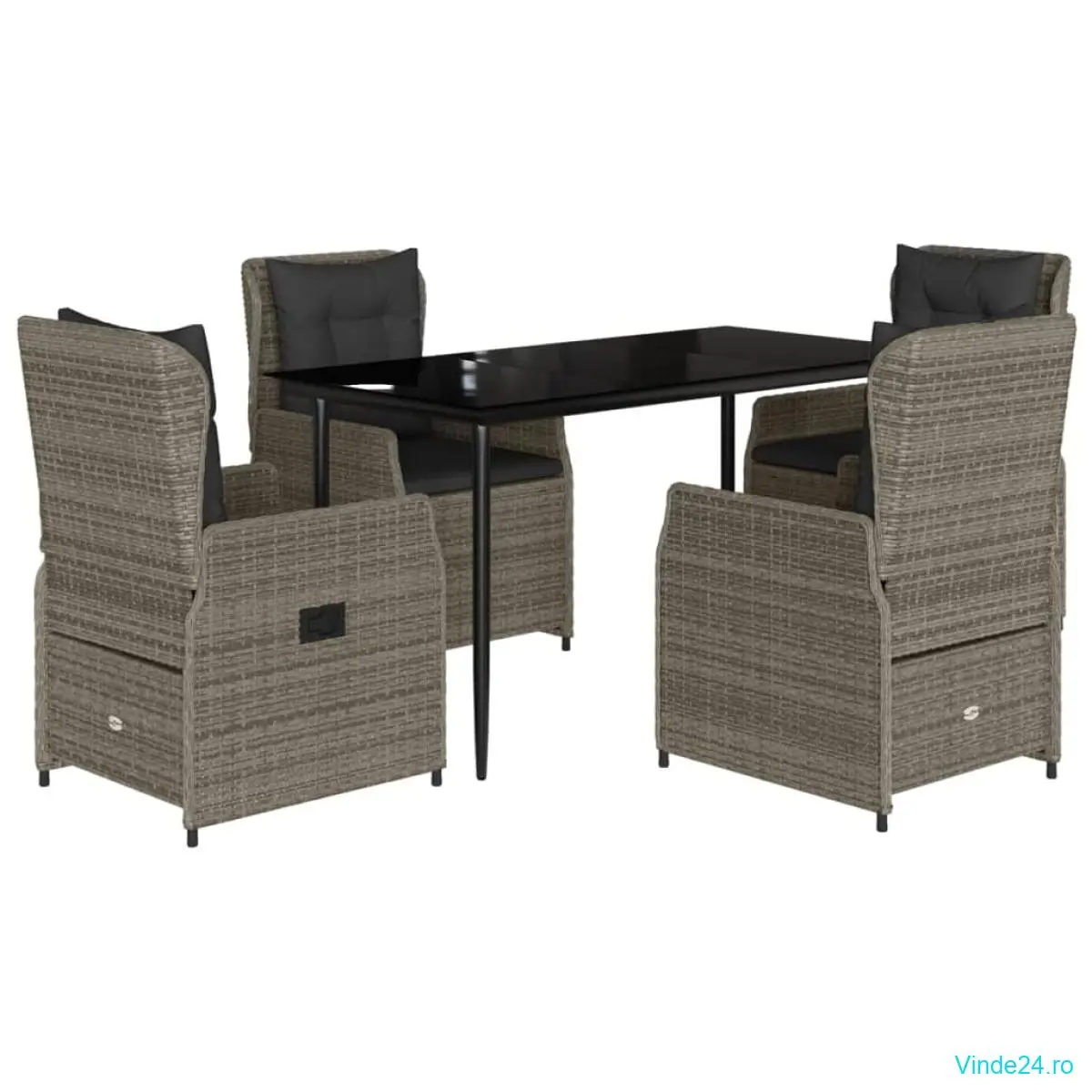 vidaXL Set mobilier de grădină cu perne, 5 piese, gri, poliratan