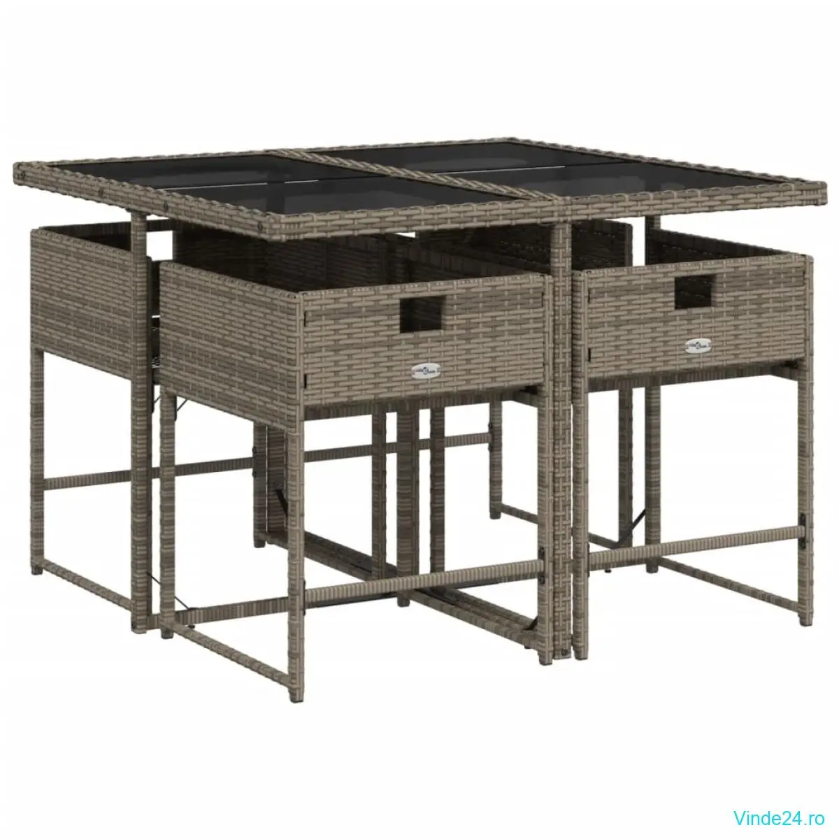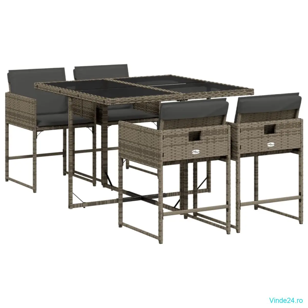 vidaXL Set mobilier de grădină cu perne, 5 piese, gri, poliratan