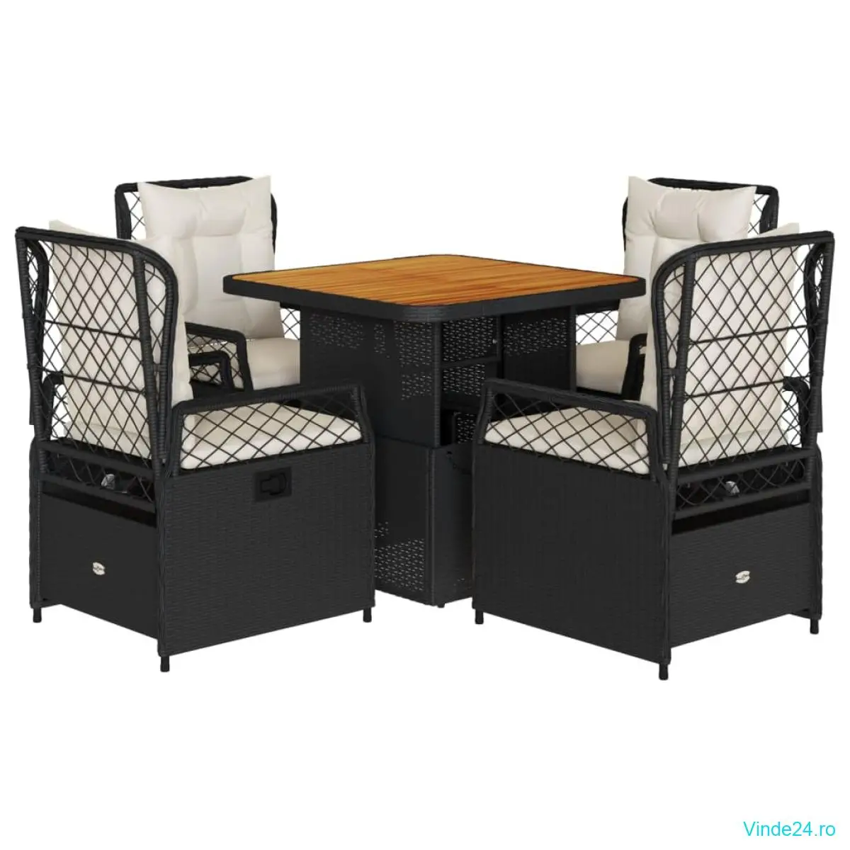 vidaXL Set mobilier de grădină cu perne, 5 piese, negru, poliratan