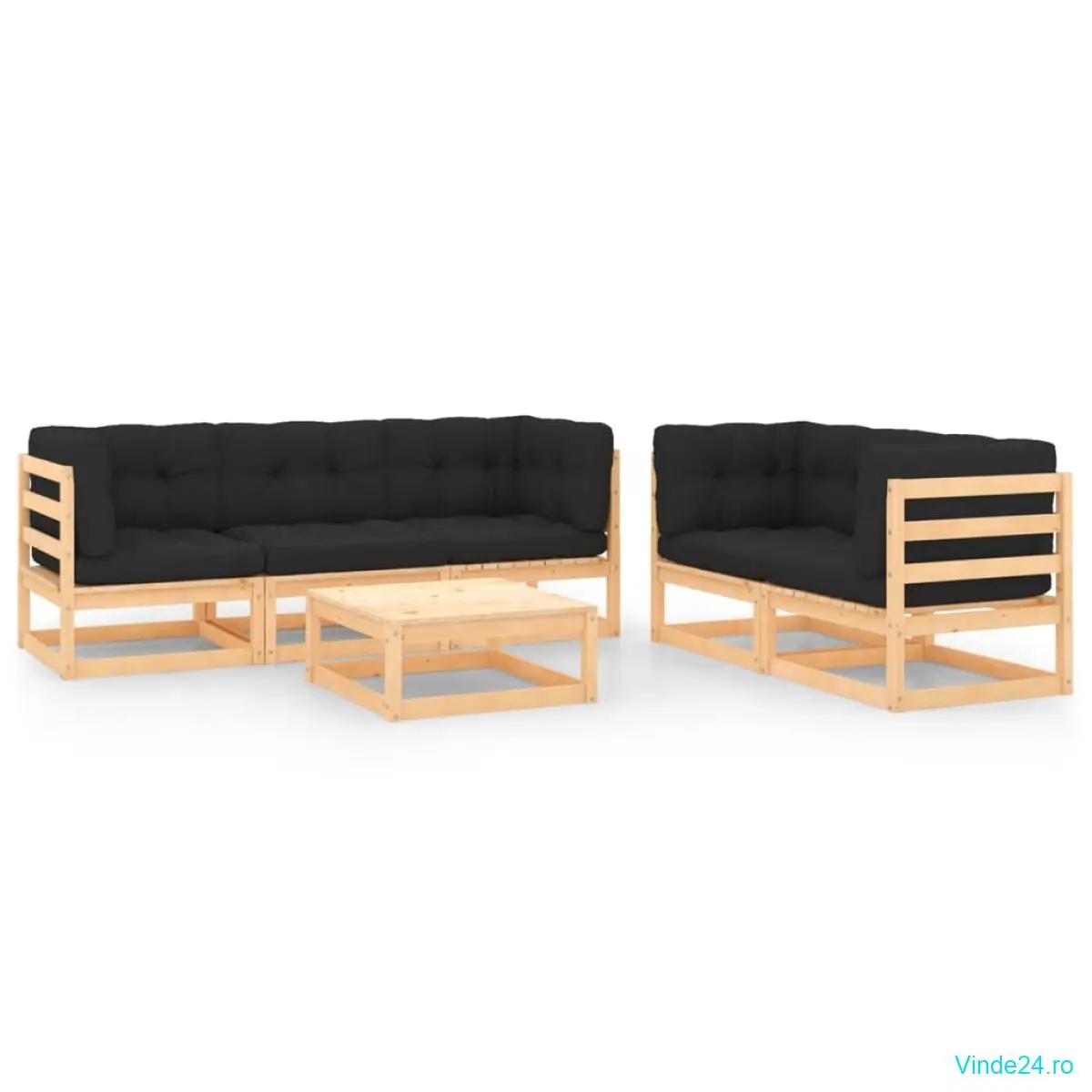 vidaXL Set mobilier de grădină cu perne, 6 piese, lemn masiv de pin