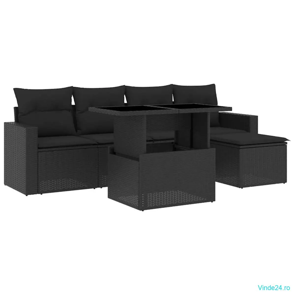 vidaXL Set mobilier de grădină cu perne, 6 piese, negru, poliratan