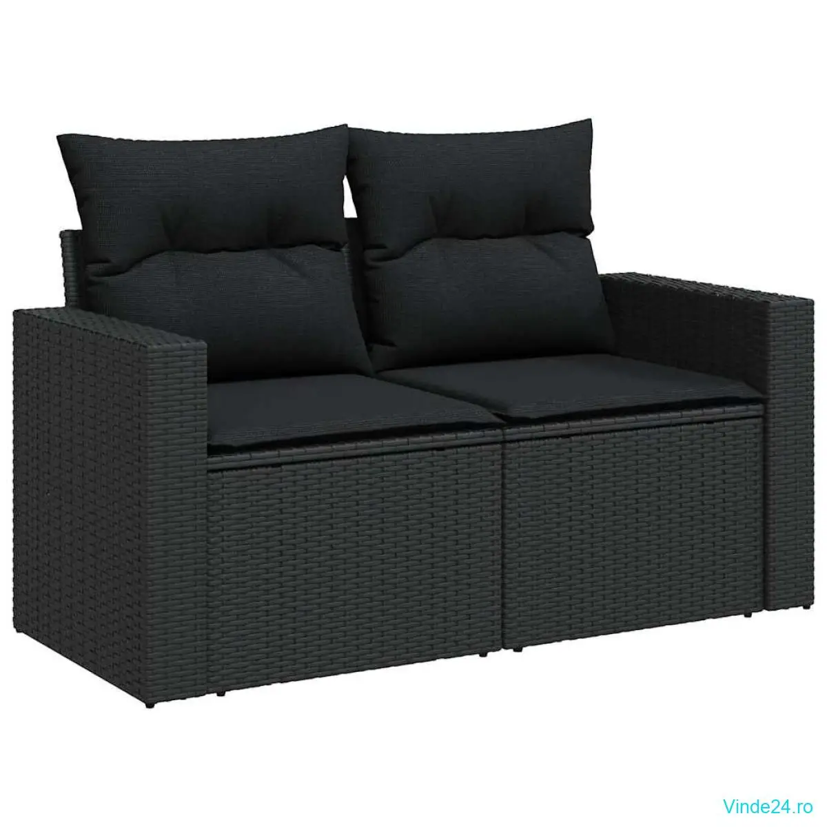 vidaXL Set mobilier de grădină cu perne, 7 piese, negru, poliratan