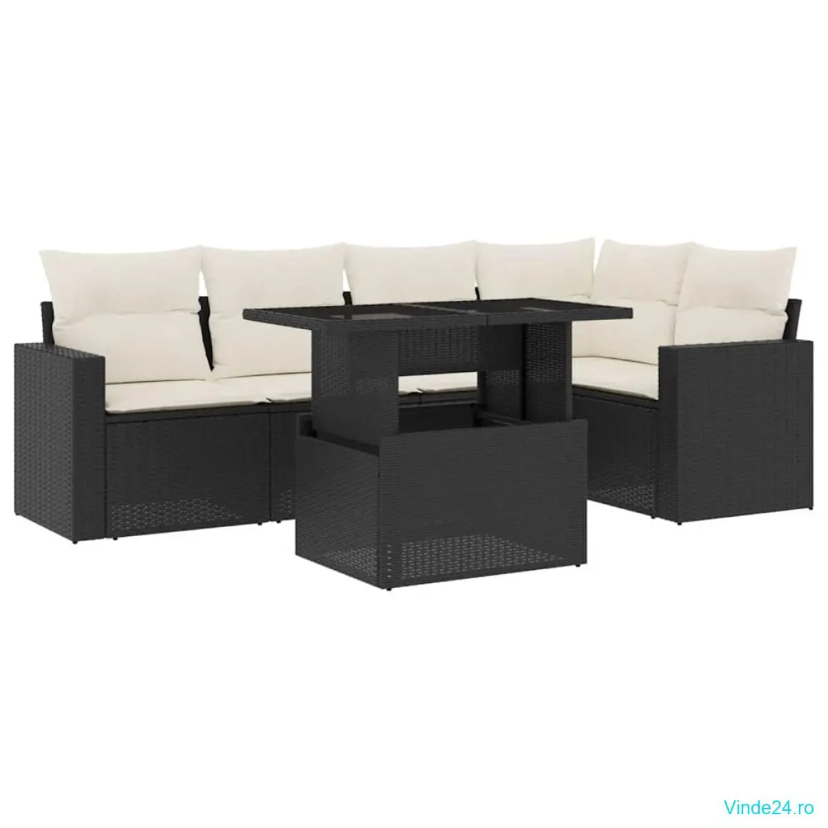 vidaXL Set mobilier de grădină cu perne, 6 piese, negru, poliratan