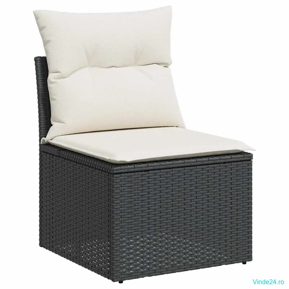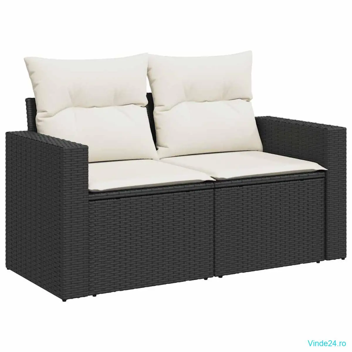 vidaXL Set mobilier de grădină cu perne, 7 piese, negru, poliratan