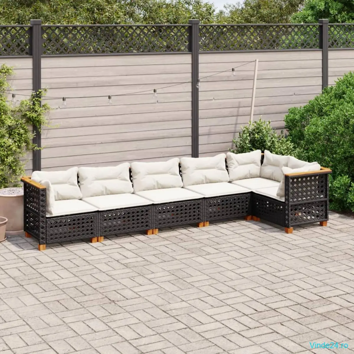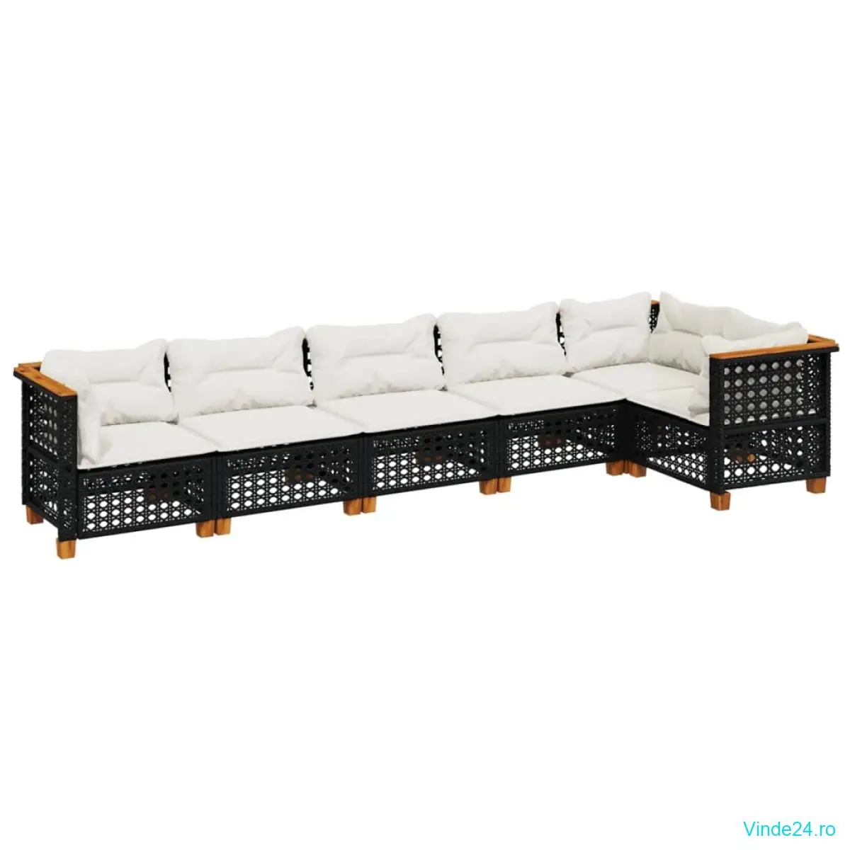 vidaXL Set mobilier de grădină cu perne, 6 piese, negru, poliratan