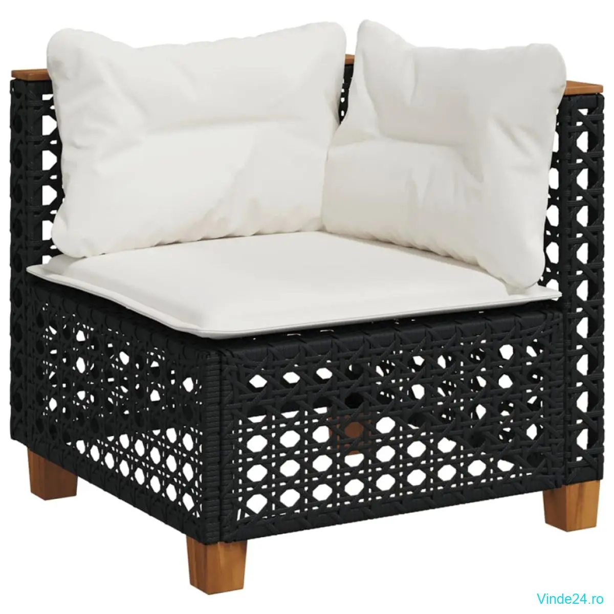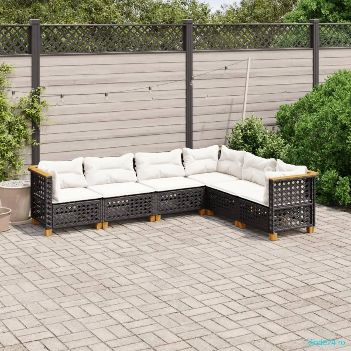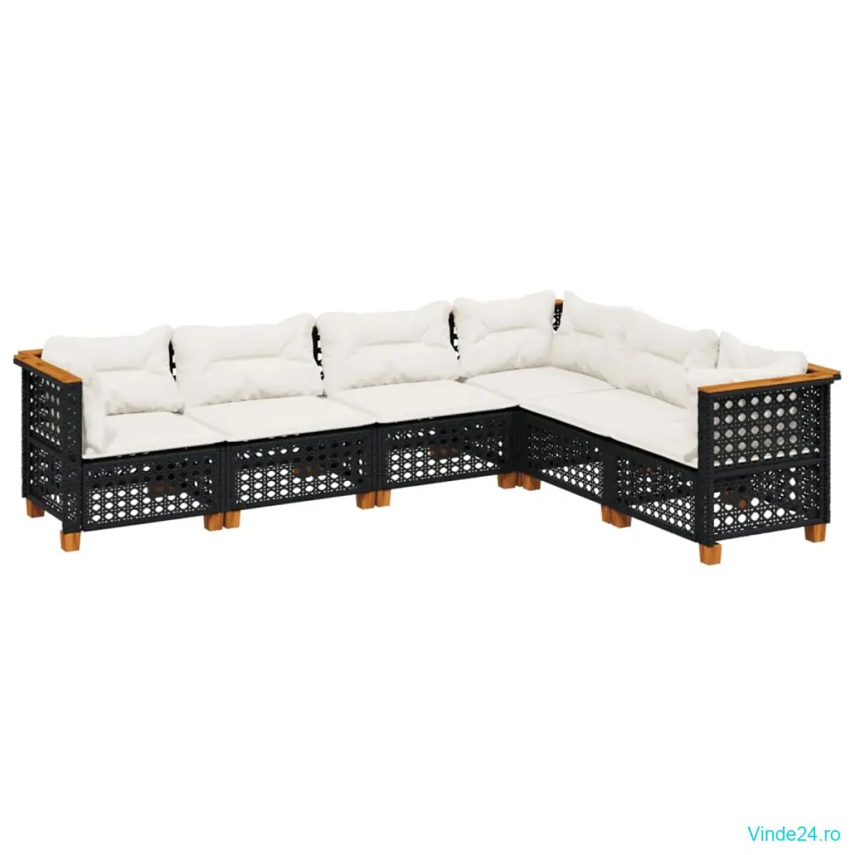 vidaXL Set mobilier de grădină cu perne, 6 piese, negru, poliratan