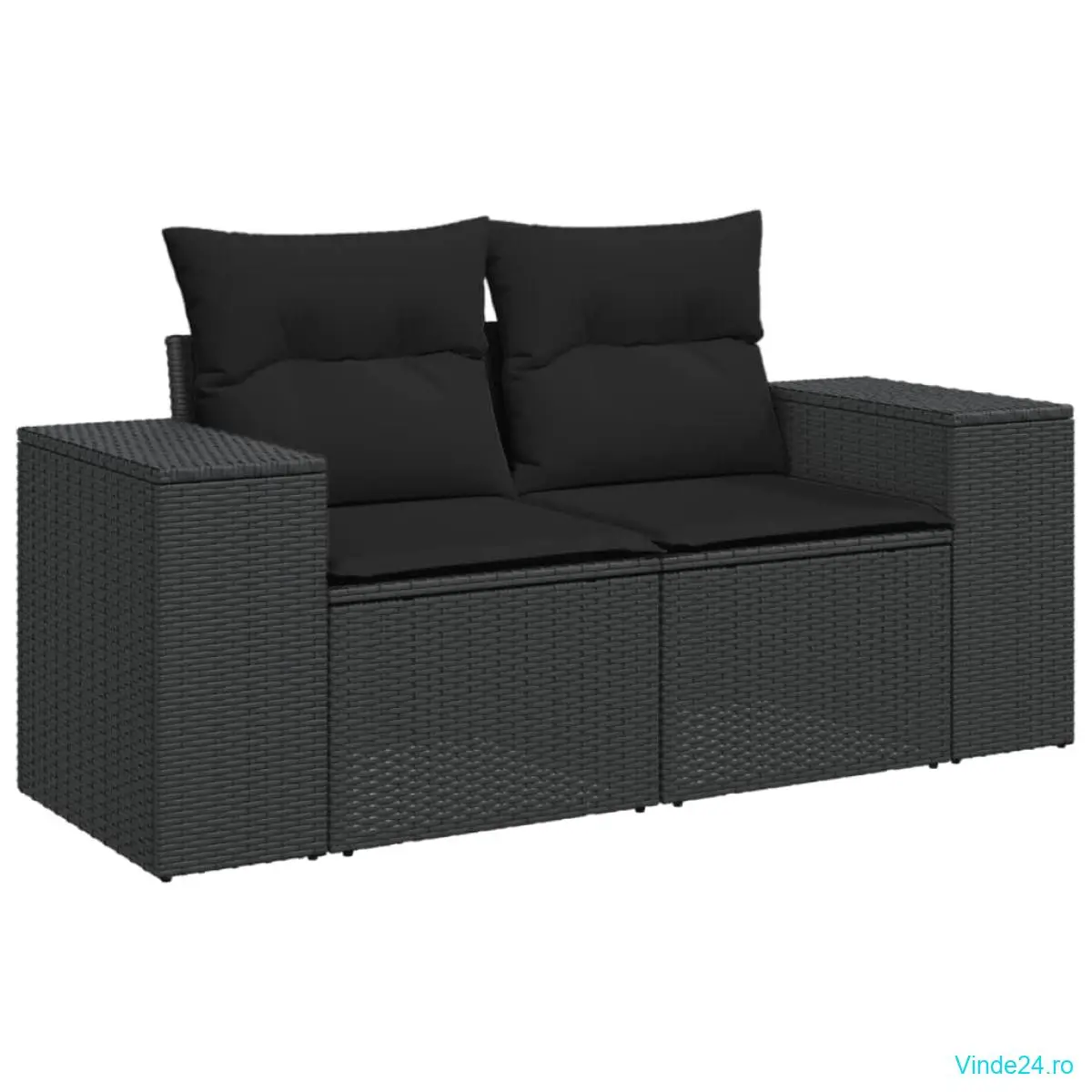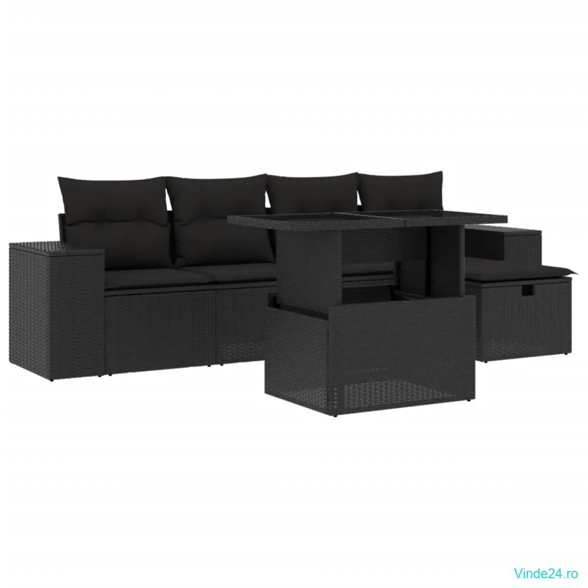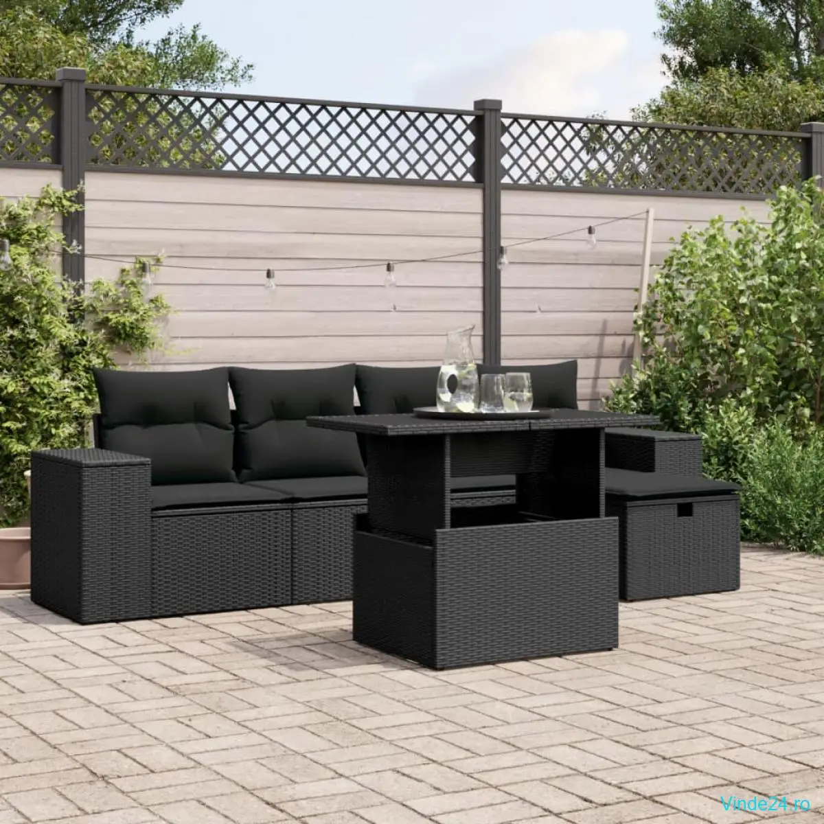 vidaXL Set mobilier de grădină cu perne, 6 piese, negru, poliratan