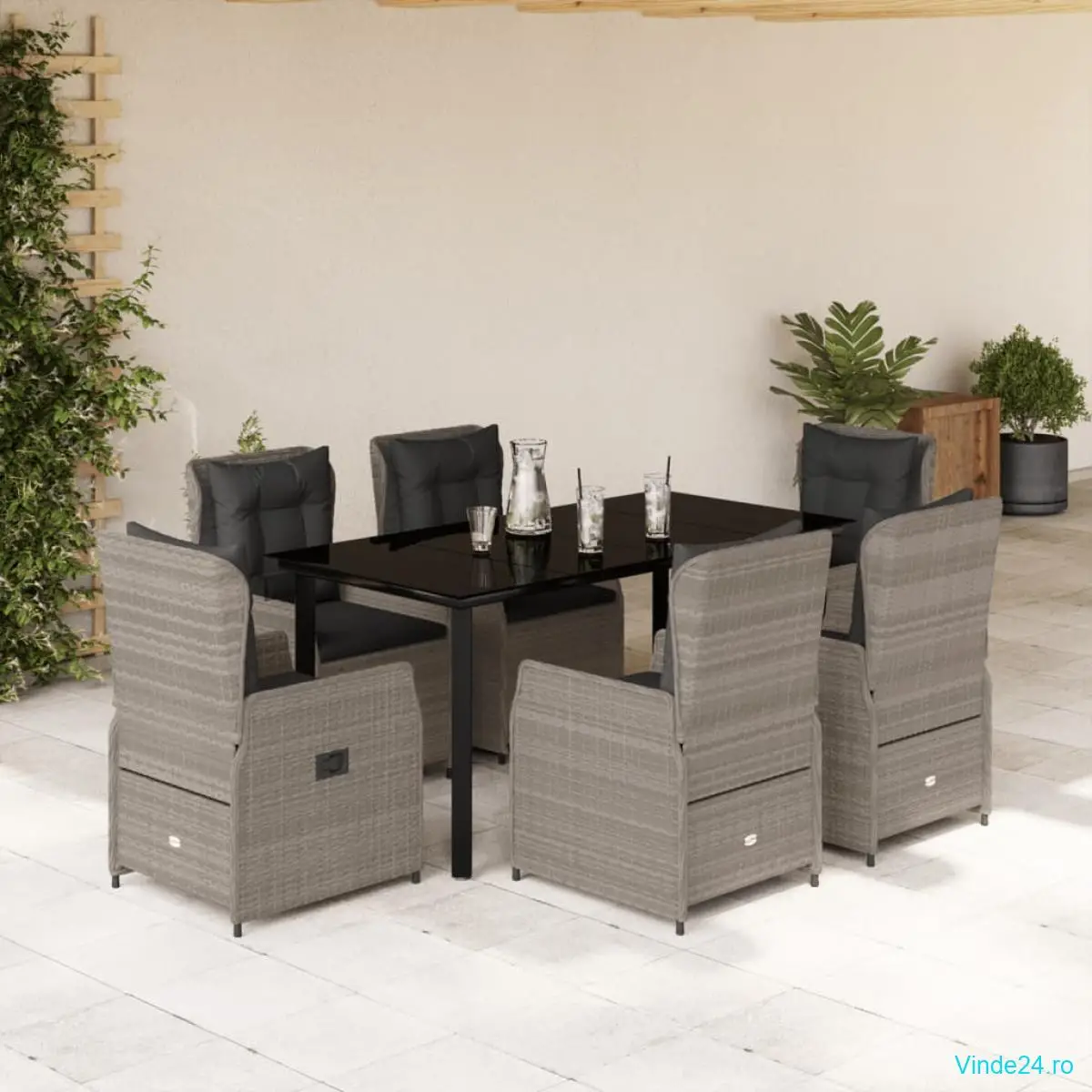 - Blat de masă din sticlă: Blatul mesei de exterior este fabricat din sticlă securizată puternică și durabilă, fiind ușor de curățat cu o cârpă umedă și adăugând o notă de eleganță spațiului dvs. de exterior.