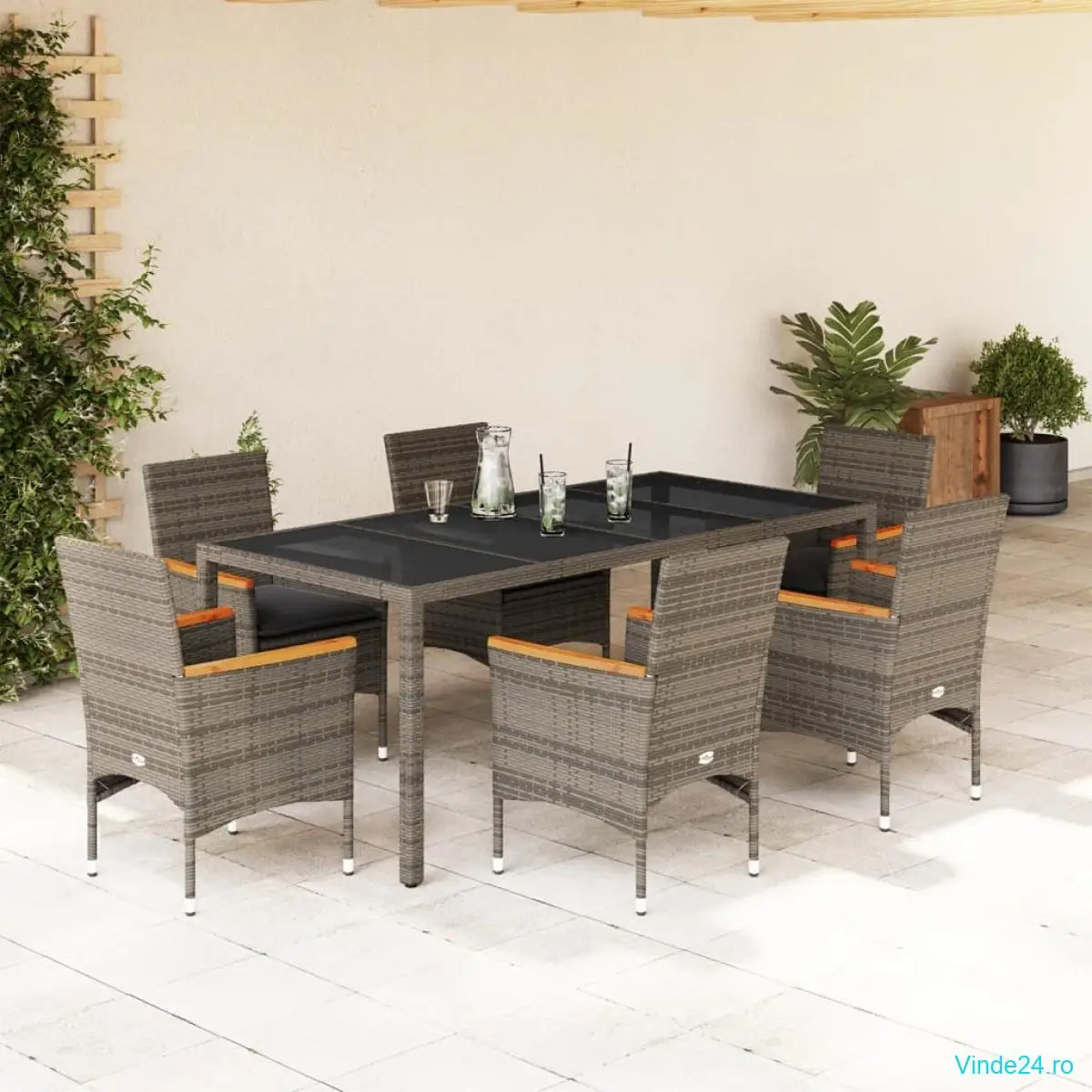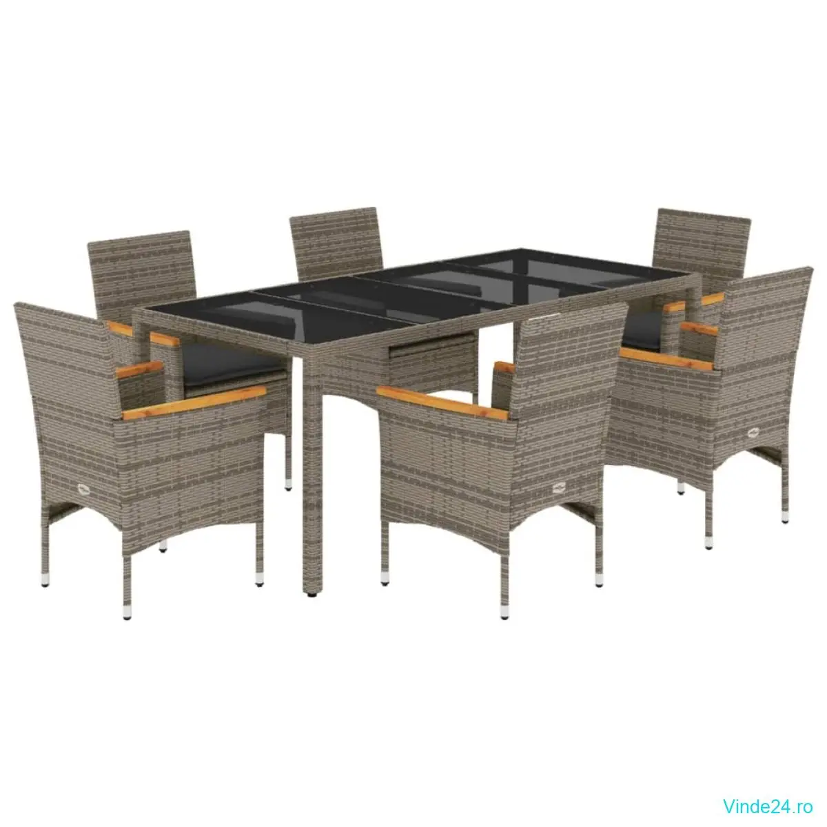 vidaXL Set mobilier de grădină cu perne 7 piese gri poliratan & sticlă