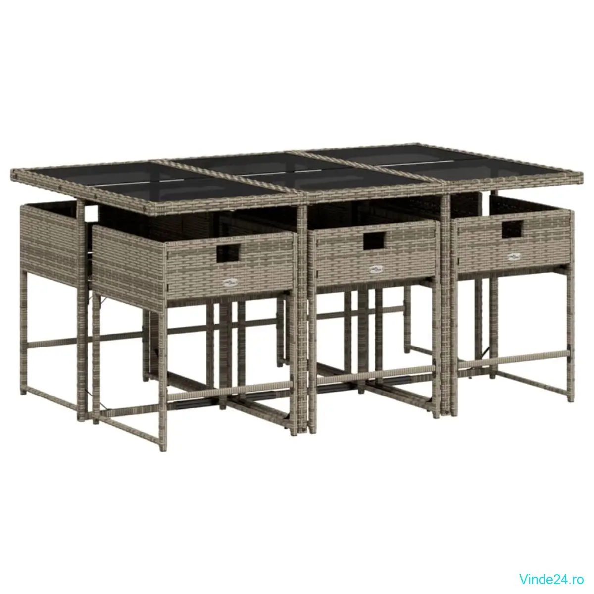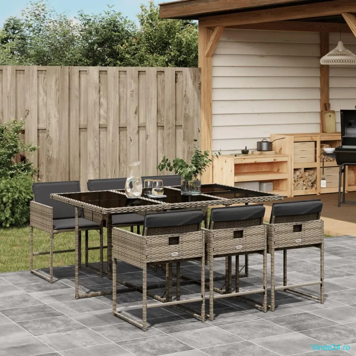 vidaXL Set mobilier de grădină cu perne, 7 piese, gri, poliratan