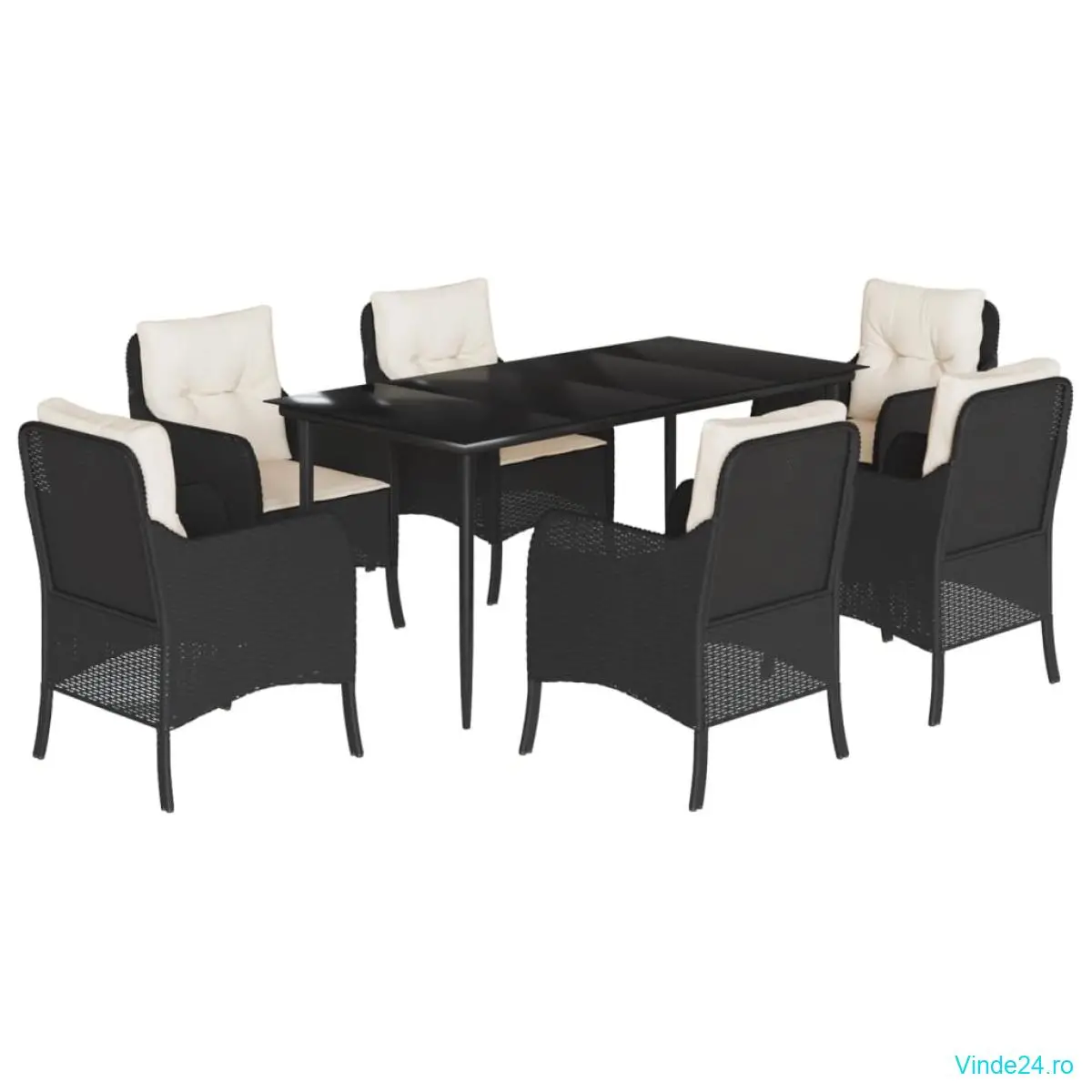 vidaXL Set mobilier de grădină cu perne, 7 piese, negru, poliratan
