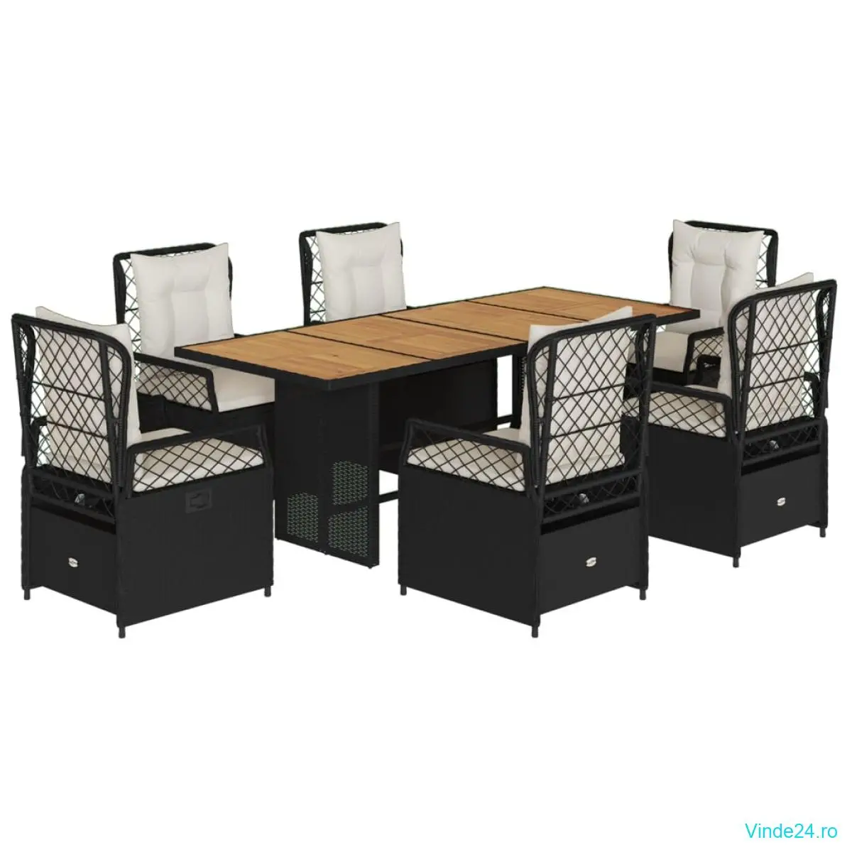vidaXL Set mobilier de grădină cu perne, 7 piese, negru, poliratan