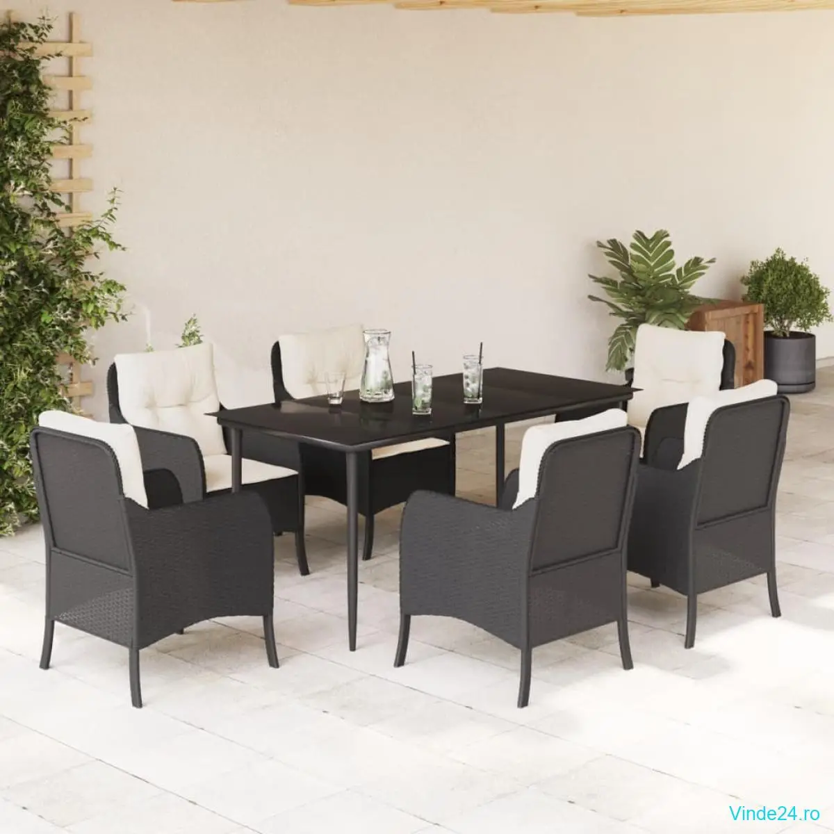 vidaXL Set mobilier de grădină cu perne, 7 piese, negru, poliratan