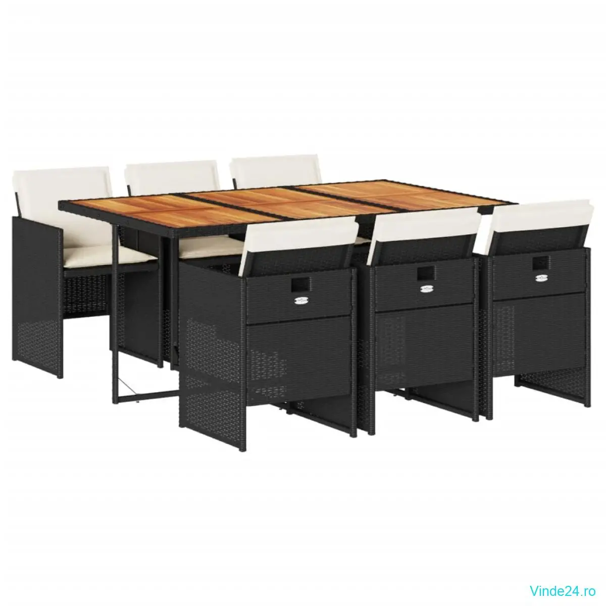 vidaXL Set mobilier de grădină cu perne, 7 piese, negru, poliratan