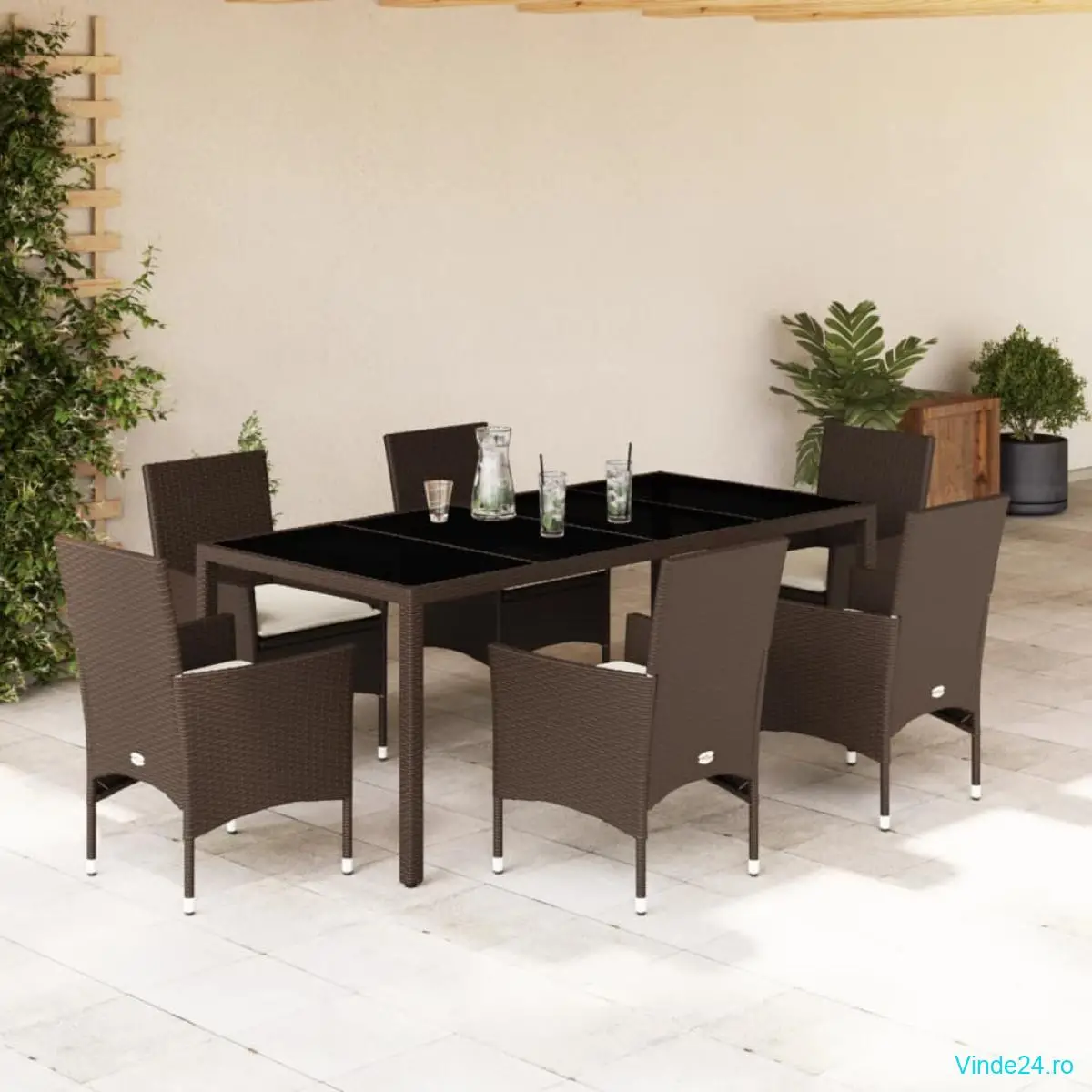 - Blat de masă din sticlă: Blatul mesei de exterior este fabricat din sticlă securizată puternică și durabilă, fiind ușor de curățat cu o cârpă umedă și adăugând o notă de eleganță spațiului dvs. de exterior.
