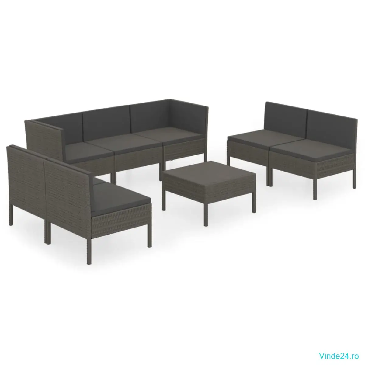 vidaXL Set mobilier de grădină cu perne, 8 piese, gri, poliratan