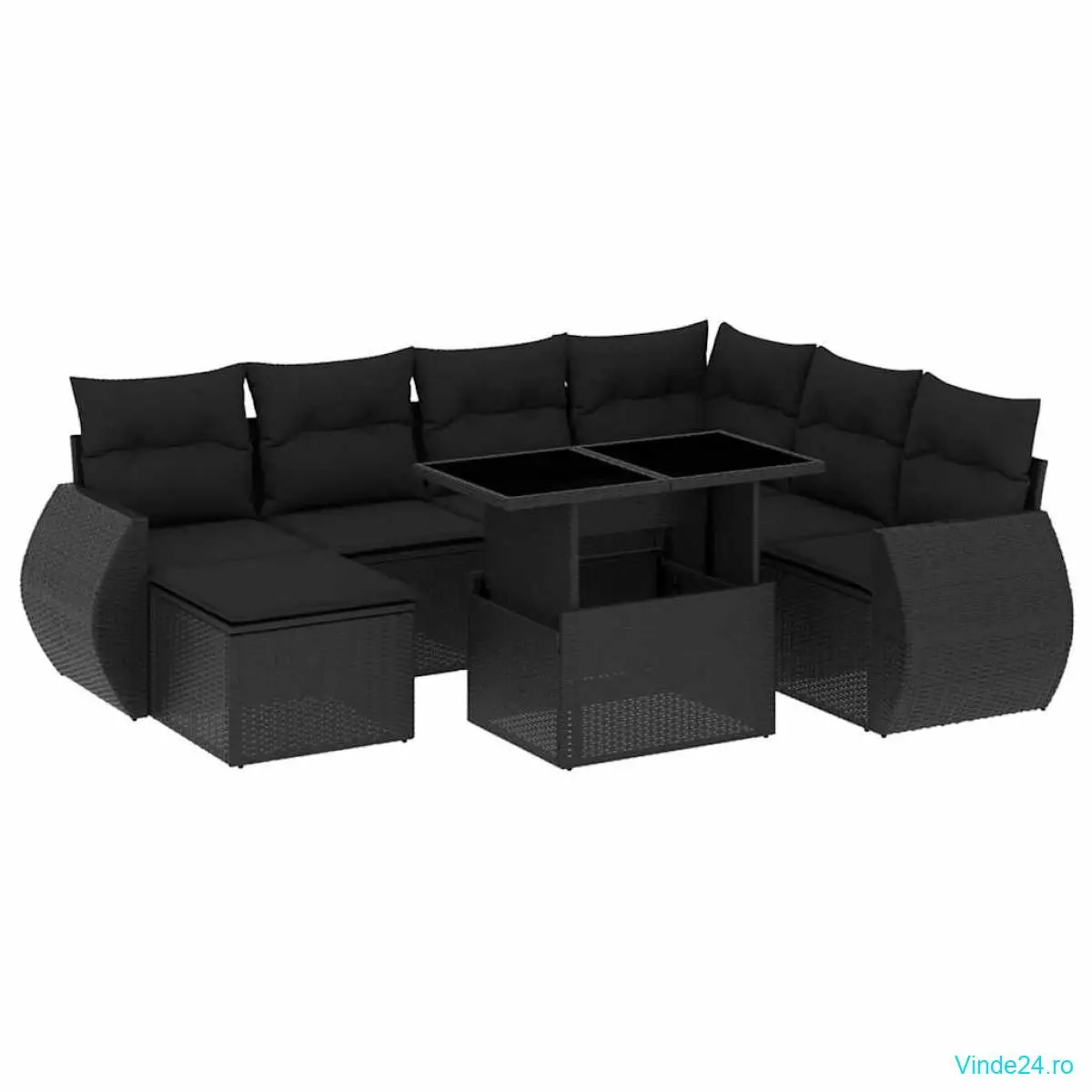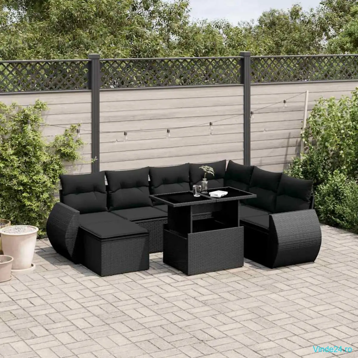 vidaXL Set mobilier de grădină cu perne, 8 piese, negru, poliratan