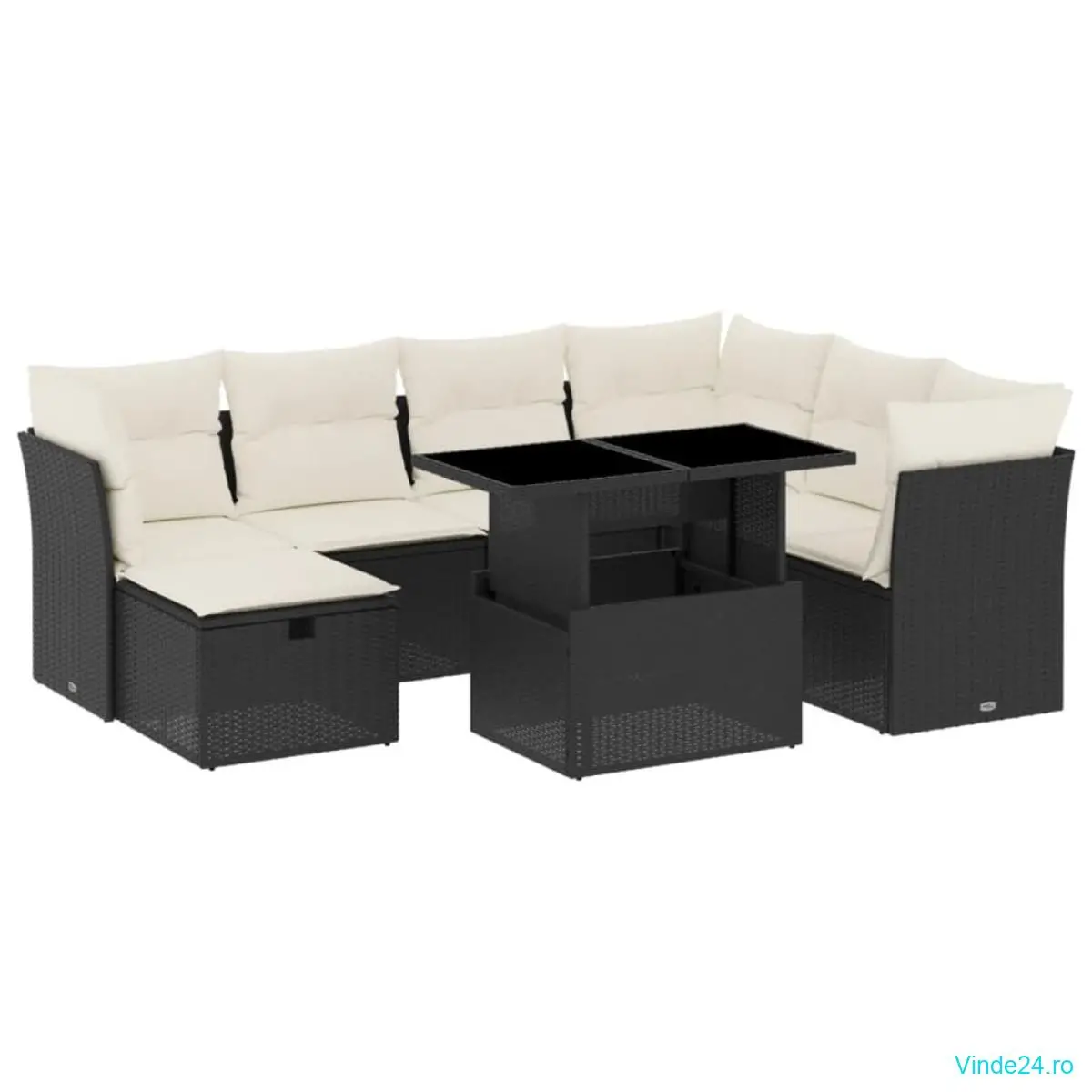vidaXL Set mobilier de grădină cu perne, 8 piese, negru, poliratan