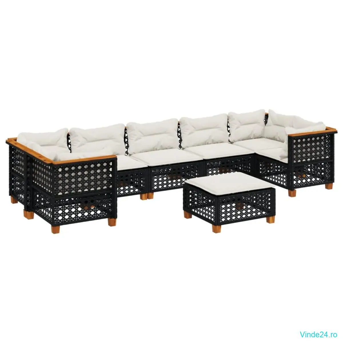 vidaXL Set mobilier de grădină cu perne, 8 piese, negru, poliratan