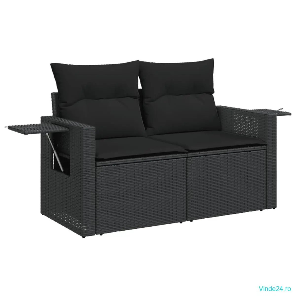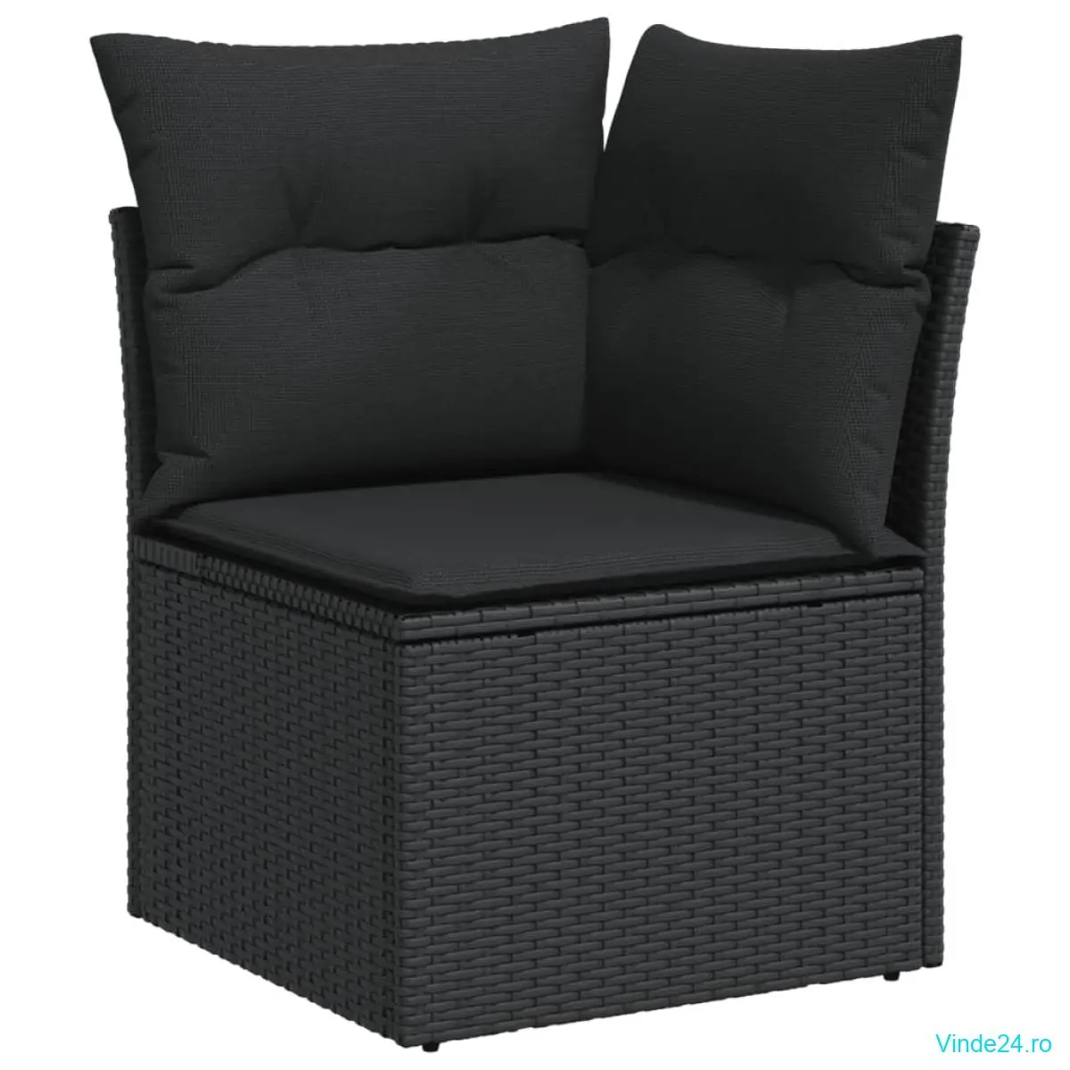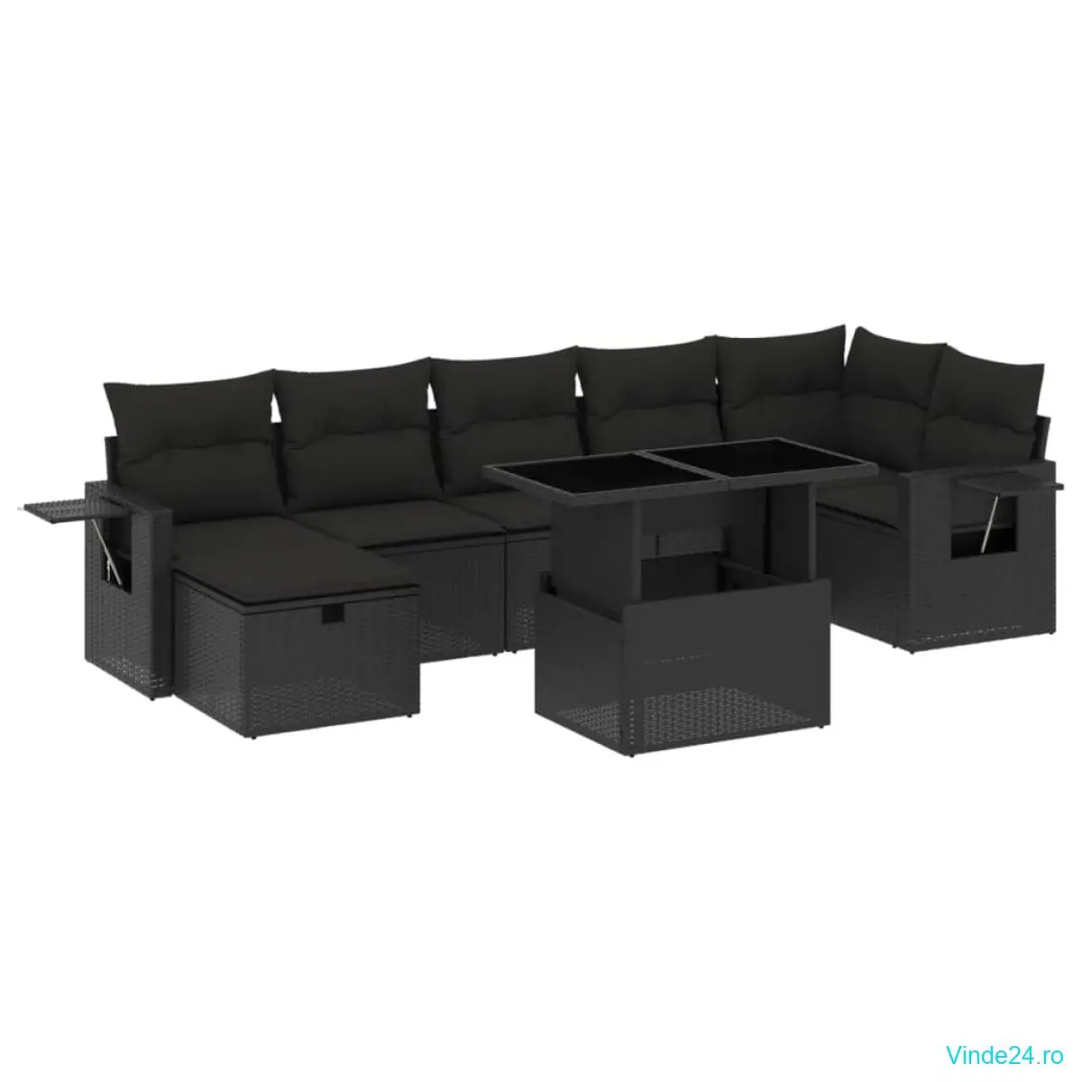 vidaXL Set mobilier de grădină cu perne, 8 piese, negru, poliratan