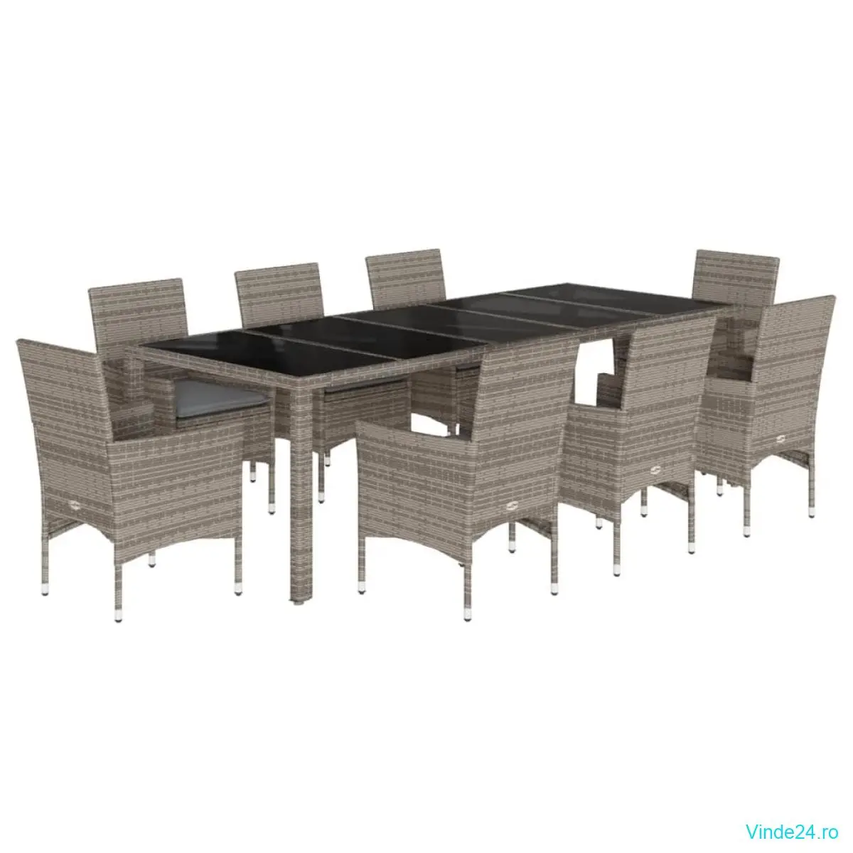 vidaXL Set mobilier de grădină cu perne 9 piese gri poliratan & sticlă