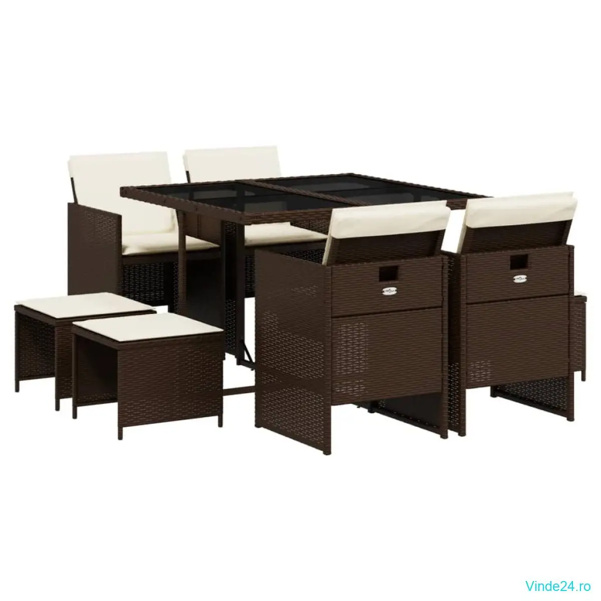 vidaXL Set mobilier de grădină cu perne, 9 piese, maro, poliratan