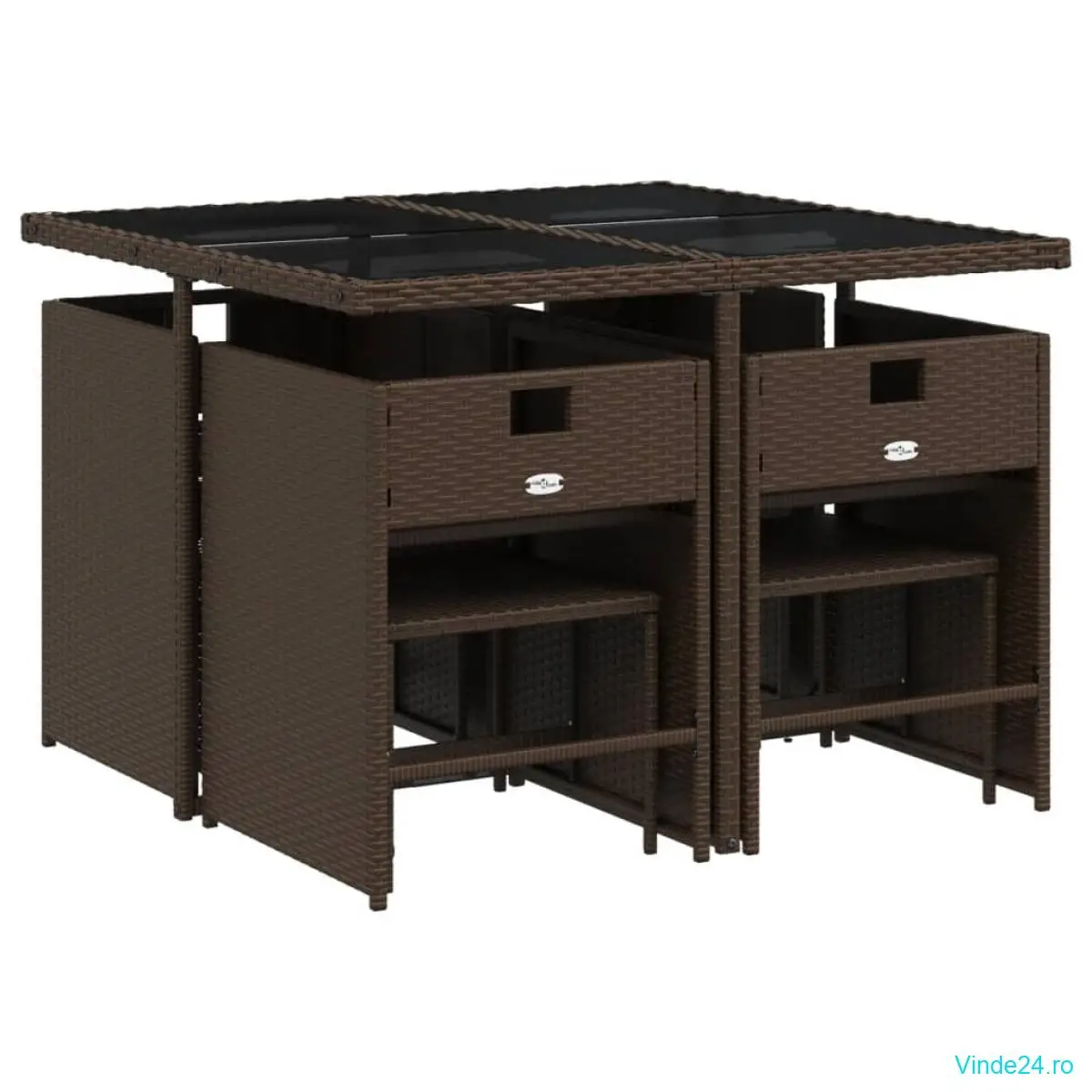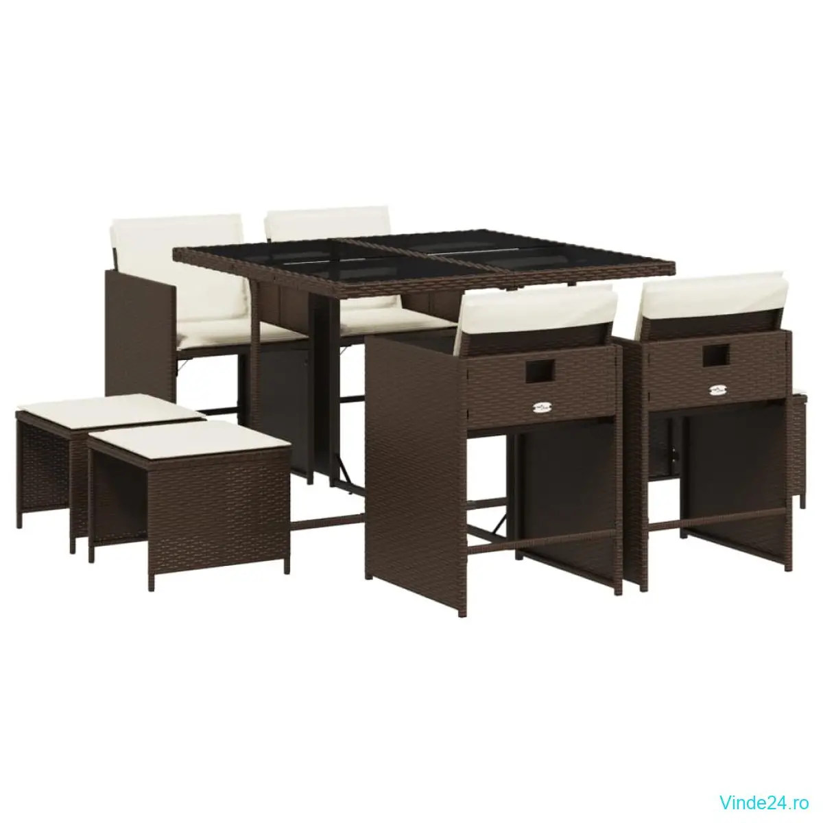 vidaXL Set mobilier de grădină cu perne, 9 piese, maro, poliratan