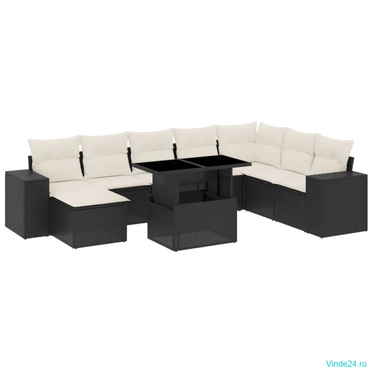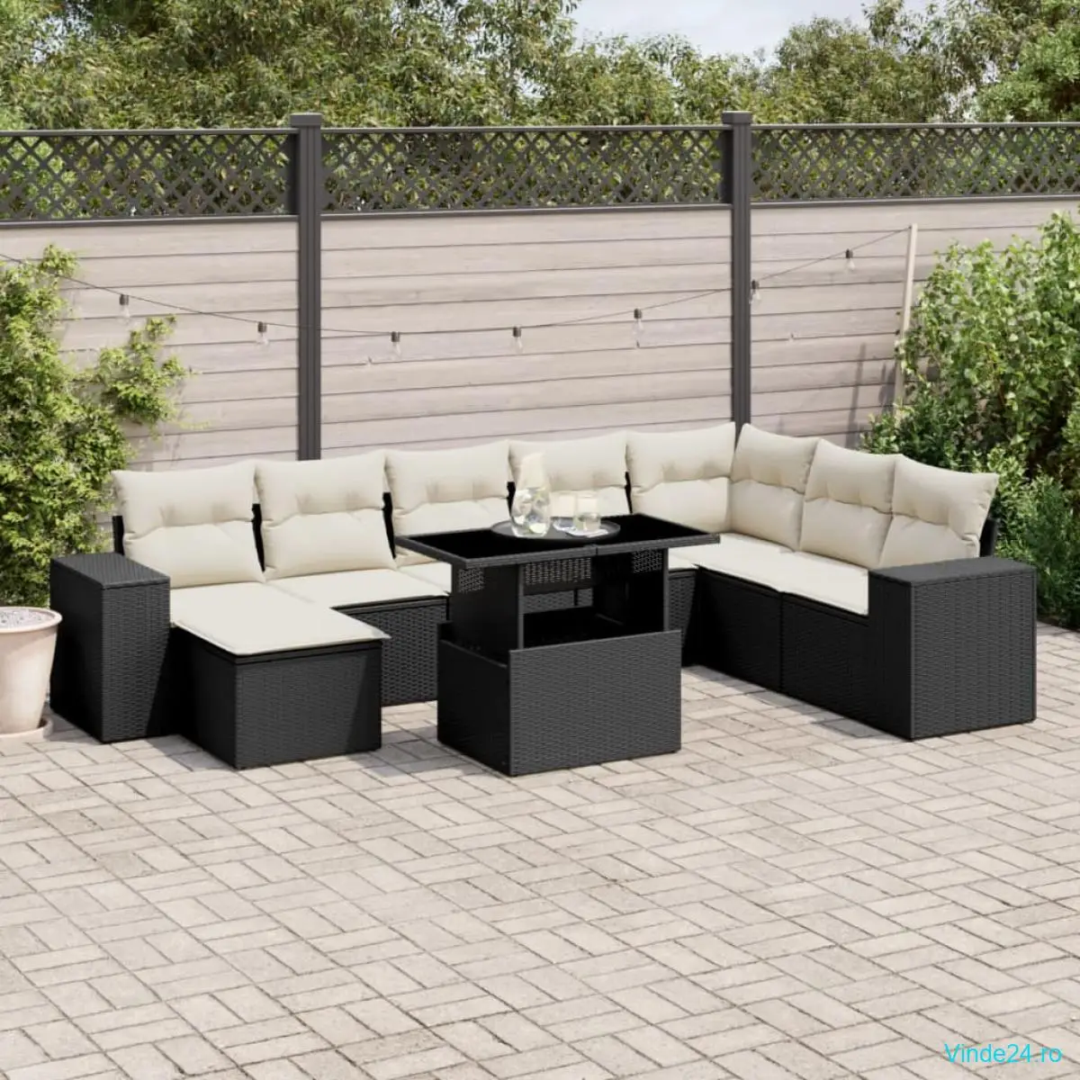 vidaXL Set mobilier de grădină cu perne, 9 piese, negru, poliratan