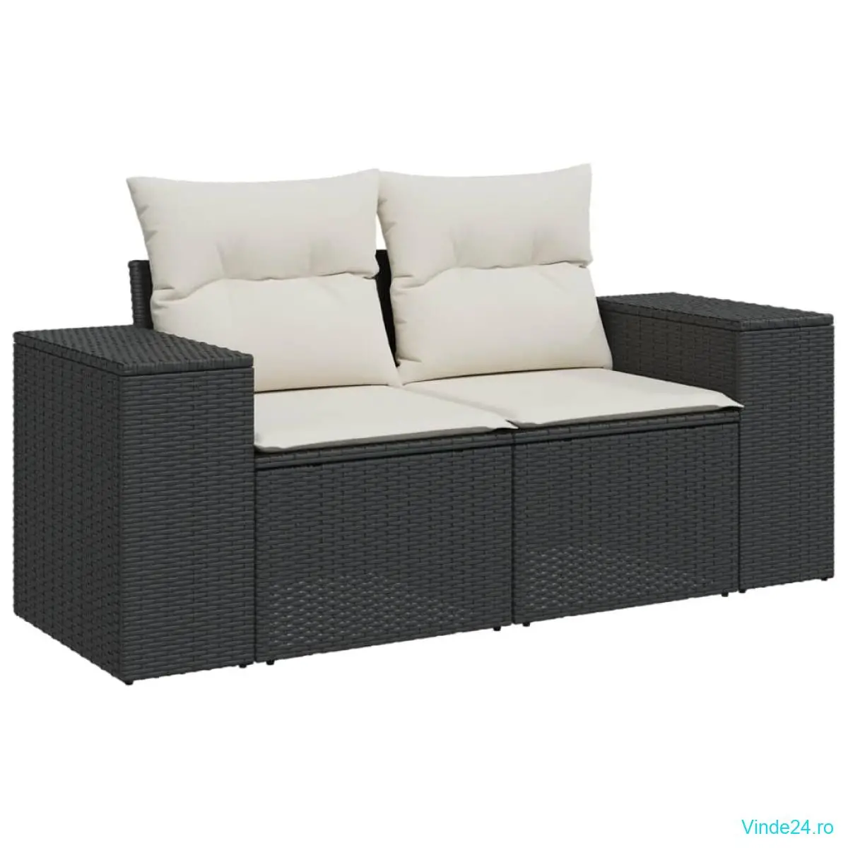 vidaXL Set mobilier de grădină cu perne, 6 piese, negru, poliratan