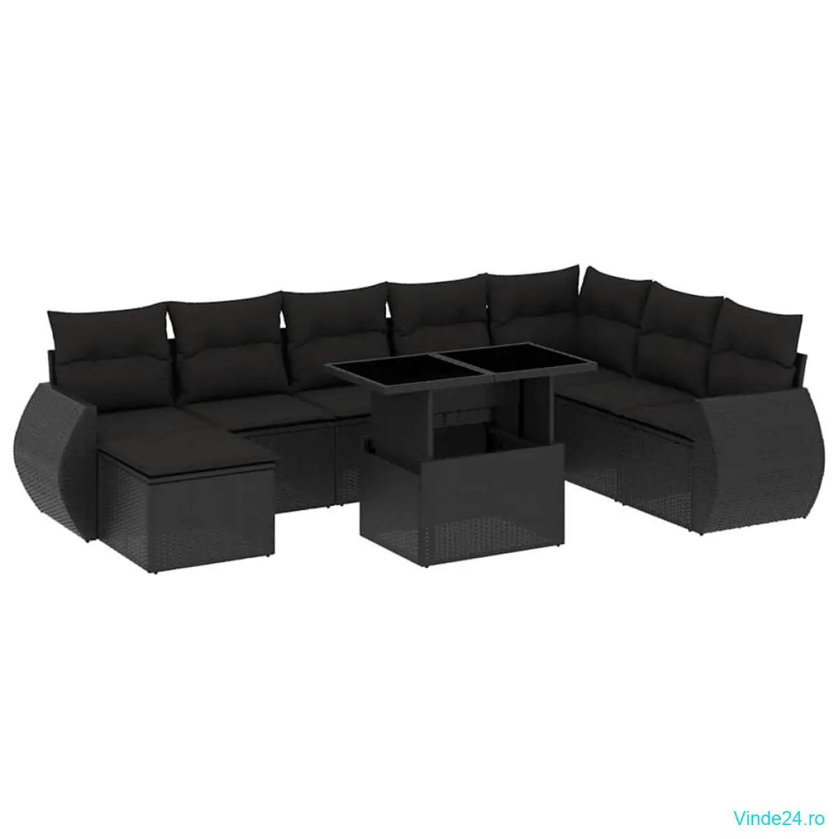 vidaXL Set mobilier de grădină cu perne, 9 piese, negru, poliratan